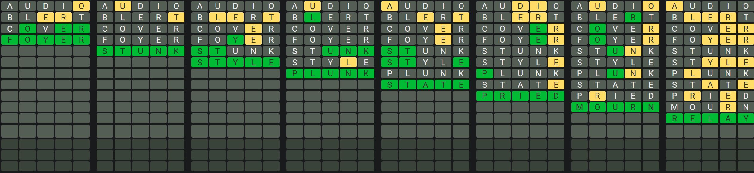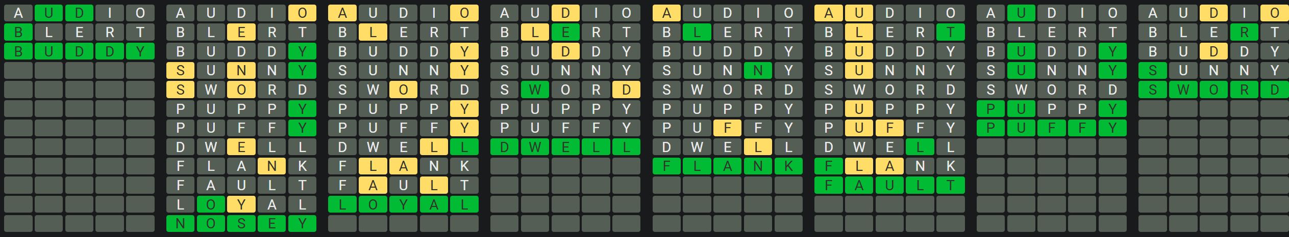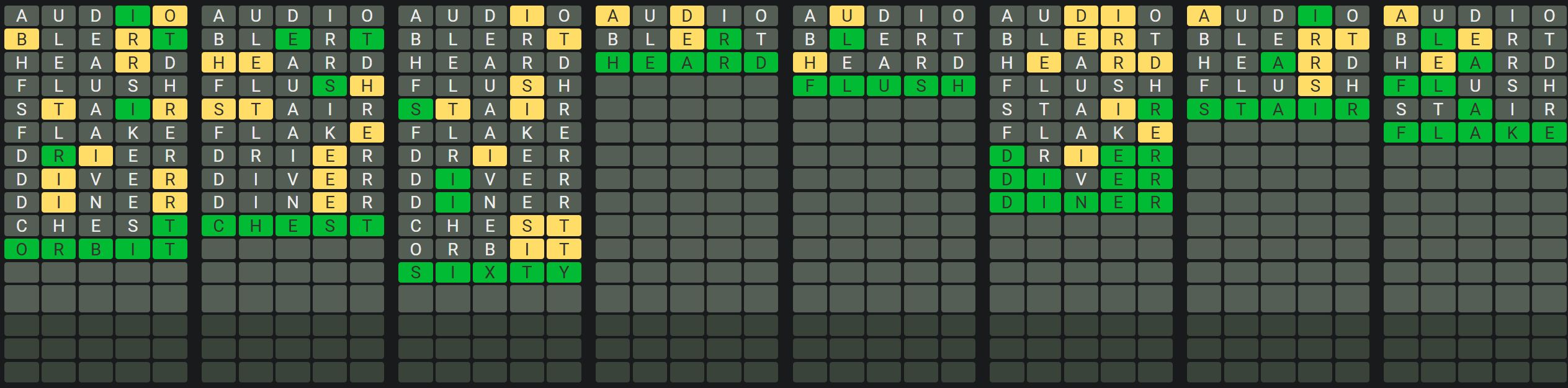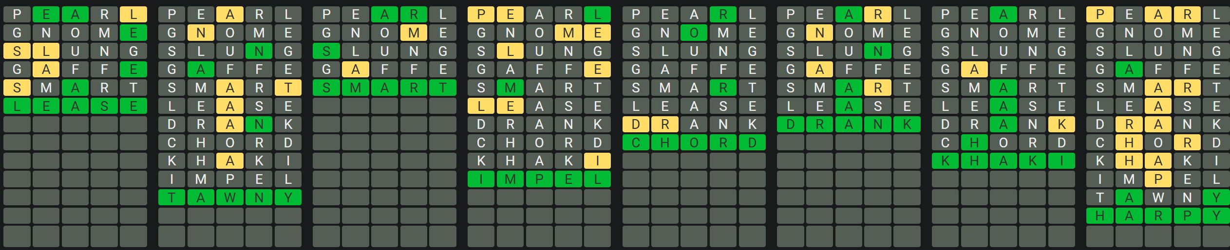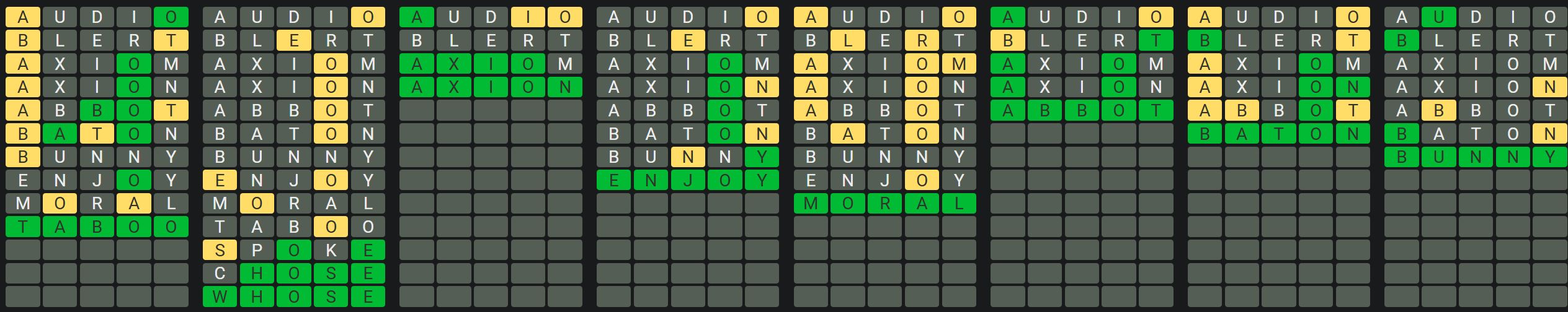 The Sequence Mode is similar to the original Octordle game with the following changes.