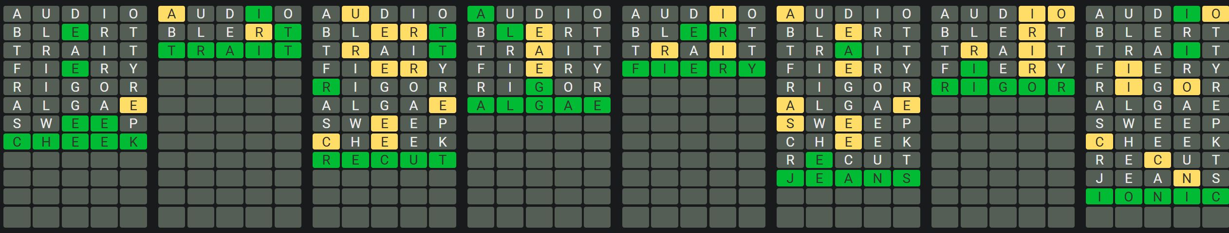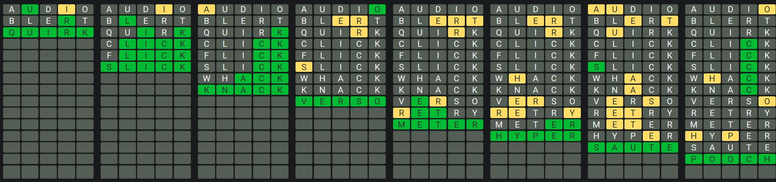 The Sequence Mode is similar to the original Octordle game with the following changes.