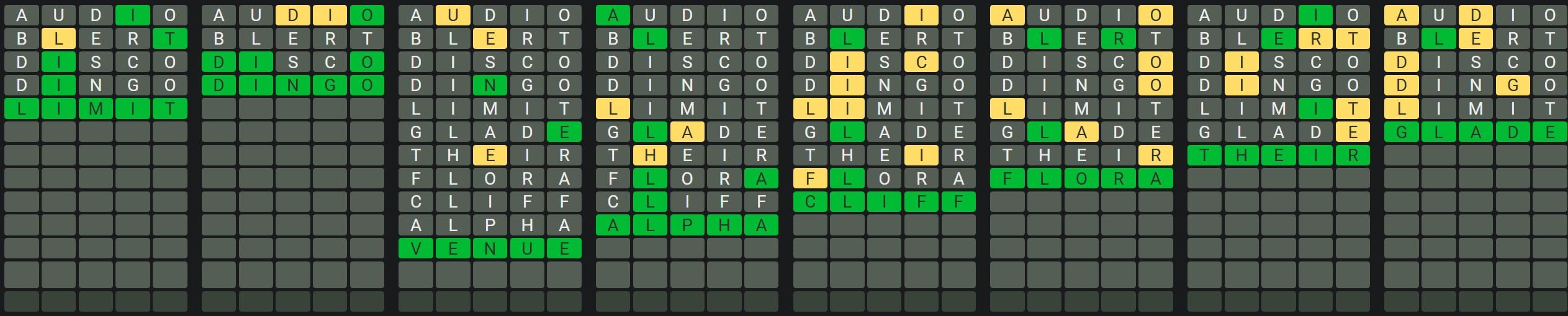 The Sequence Mode is similar to the original Octordle game with the following changes.