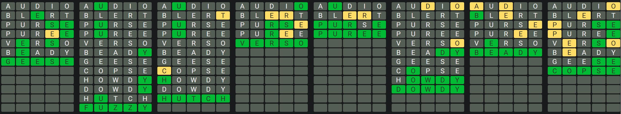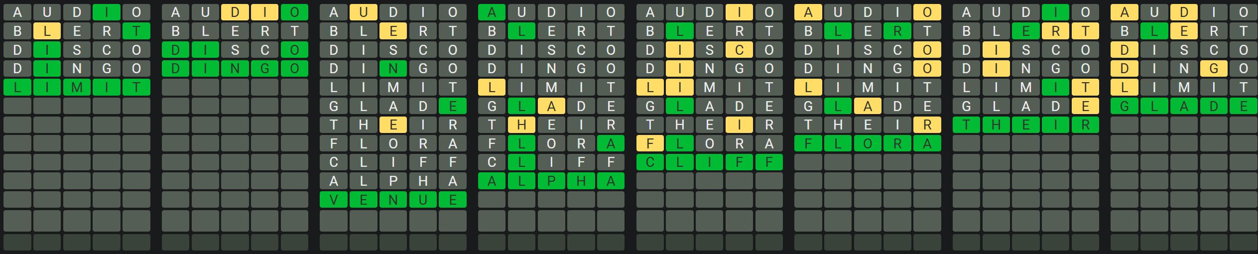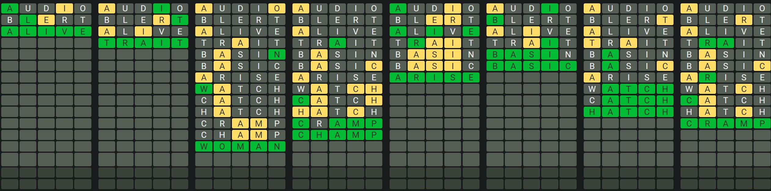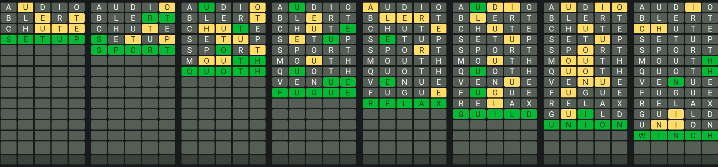 The Sequence Mode is similar to the original Octordle game with the following changes.
