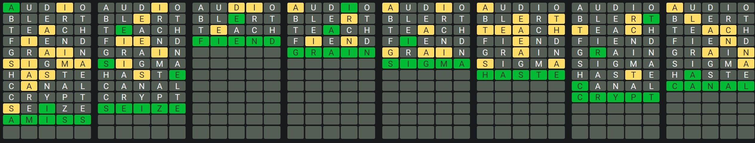 1. Only one unsolved word is visible at a time. Once you solve a word, the next board is unlocked.
