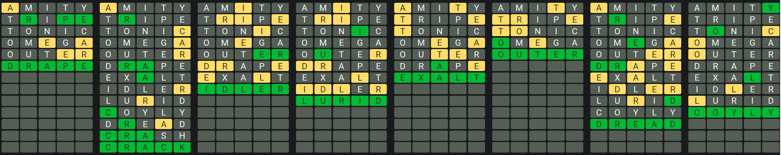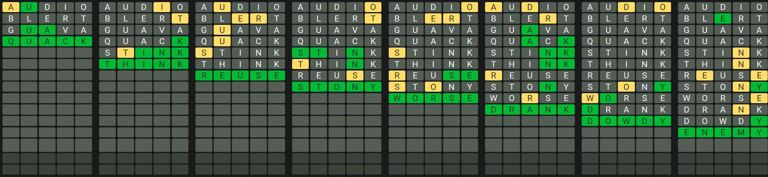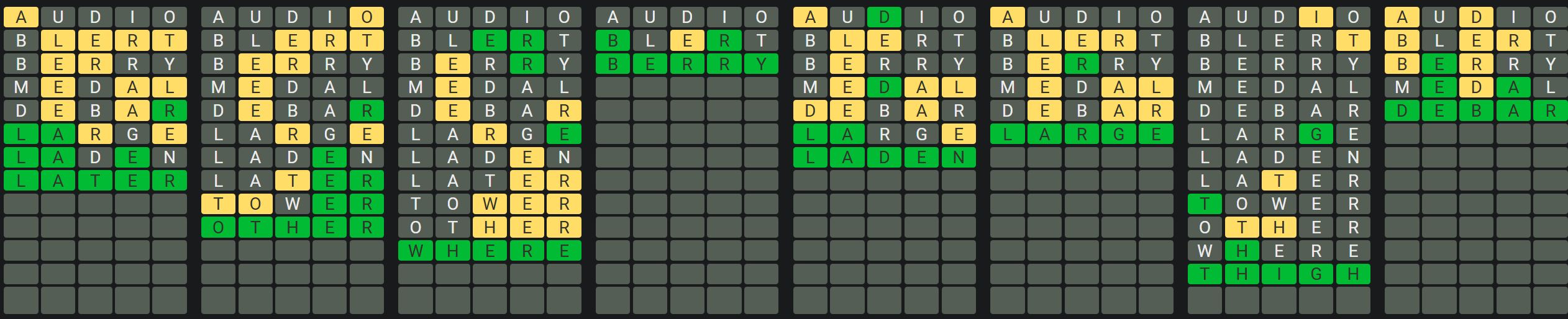The Sequence Mode is similar to the original Octordle game with the following changes.