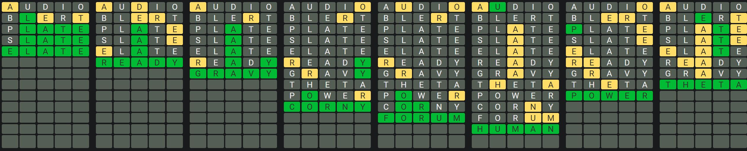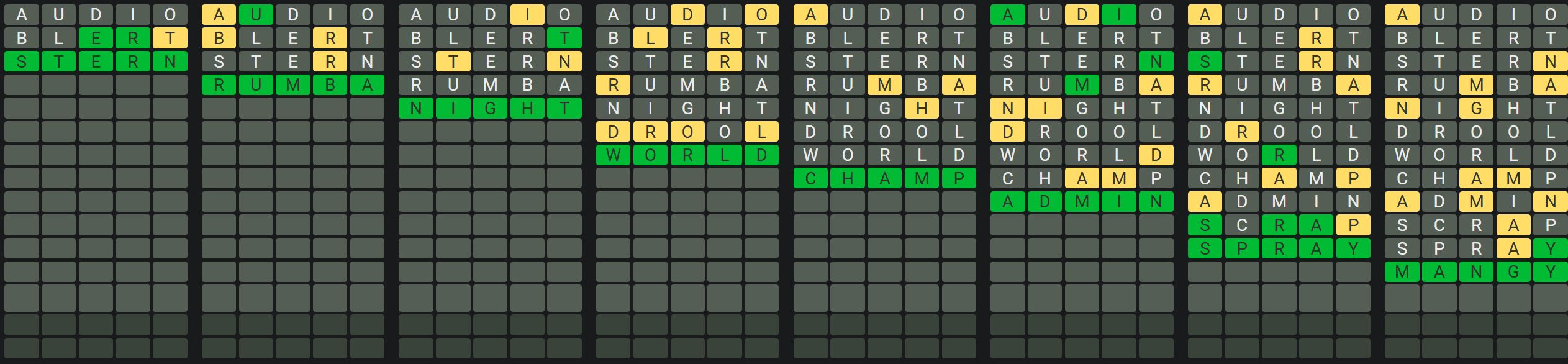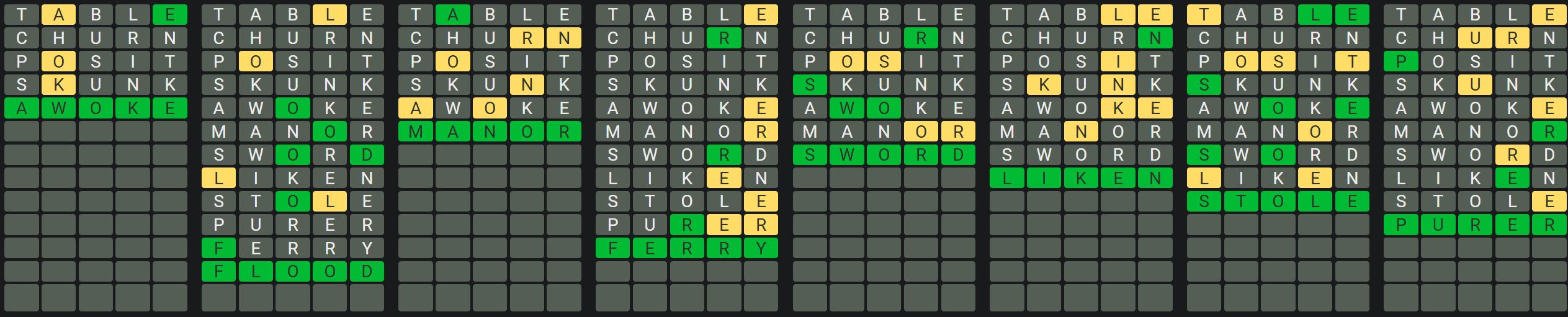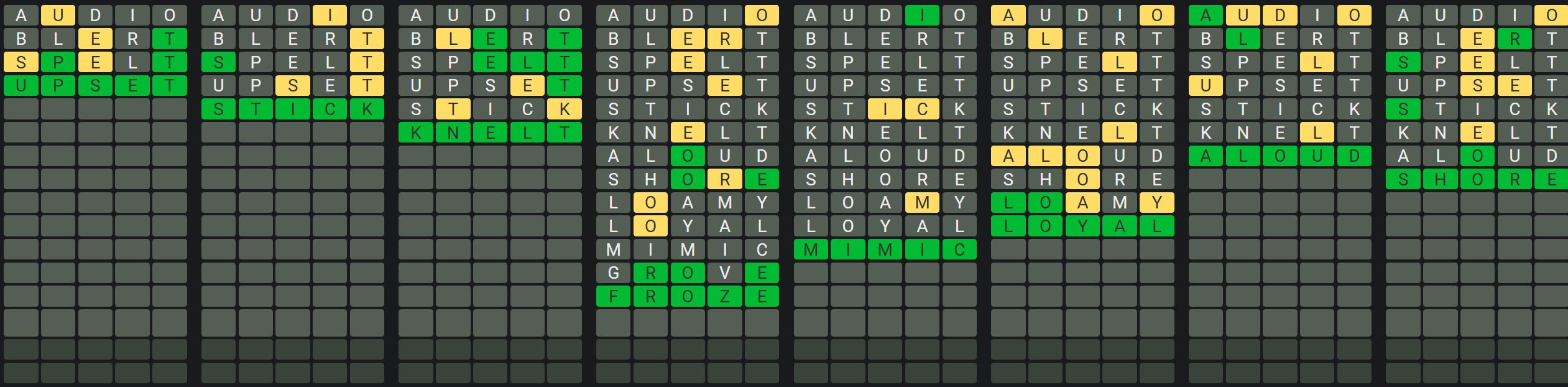 The Sequence Mode is similar to the original Octordle game with the following changes.