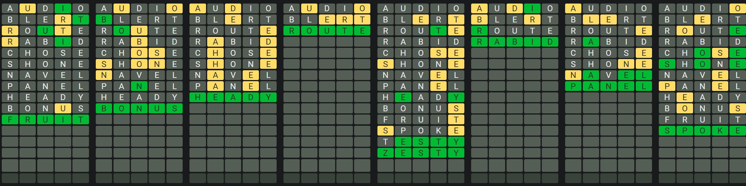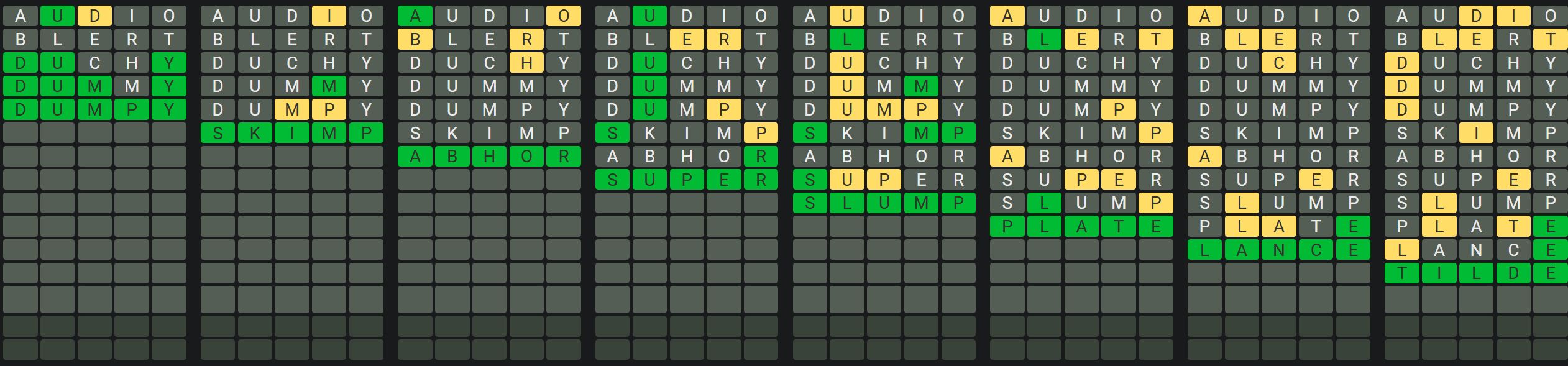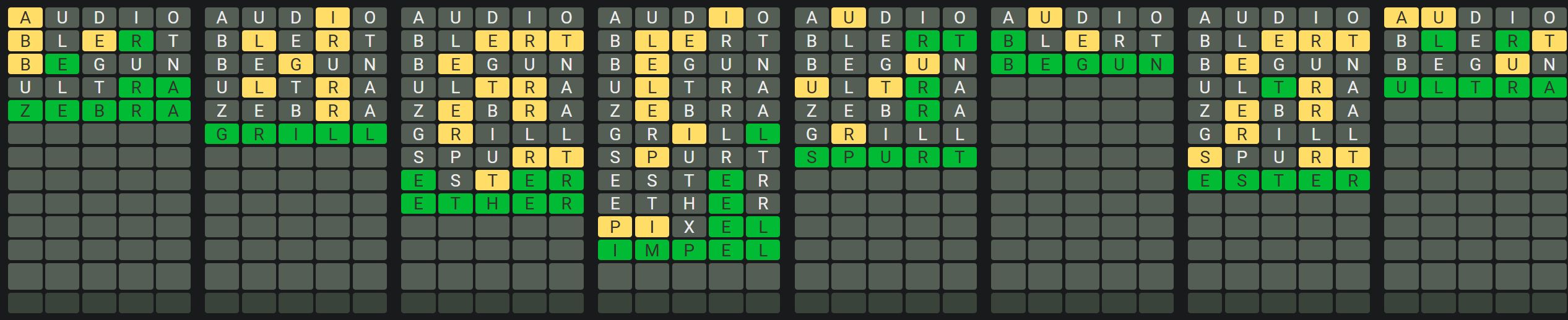 The Sequence Mode is similar to the original Octordle game with the following changes.