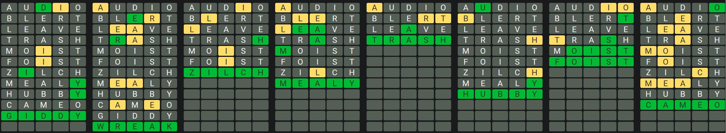 - Only one unsolved word is visible at a time. Once you solve a word, the next board is unlocked.