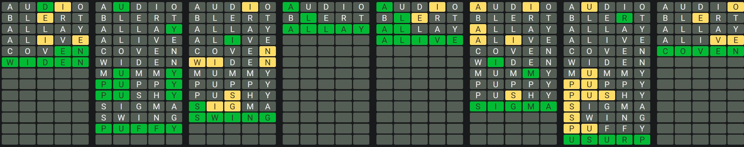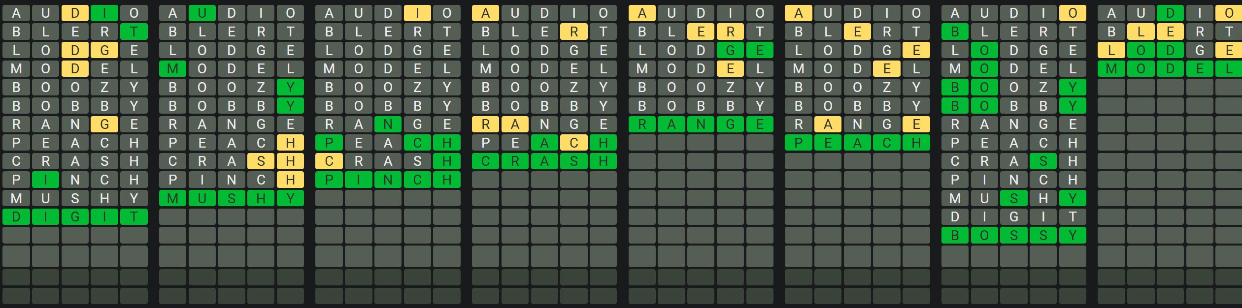 The Sequence Mode is similar to the original Octordle game with the following changes.