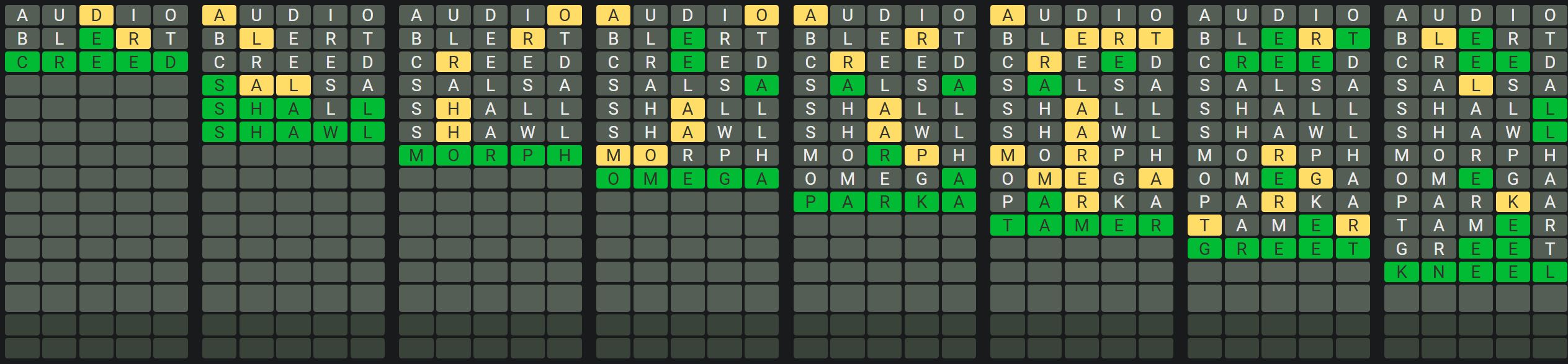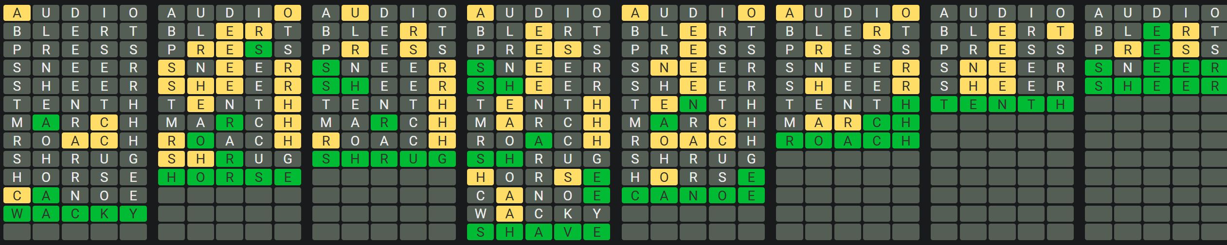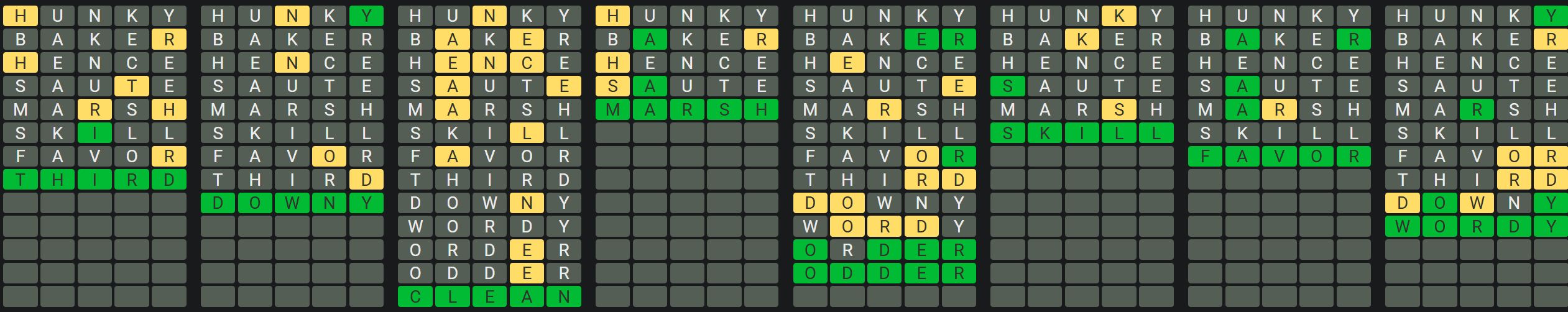 The Sequence Mode is similar to the original Octordle game with the following changes.