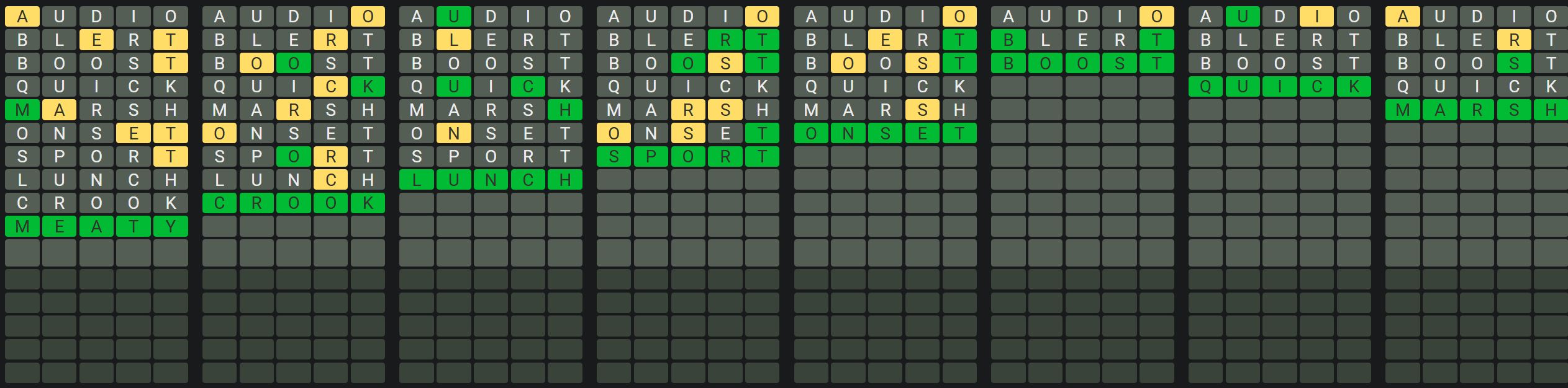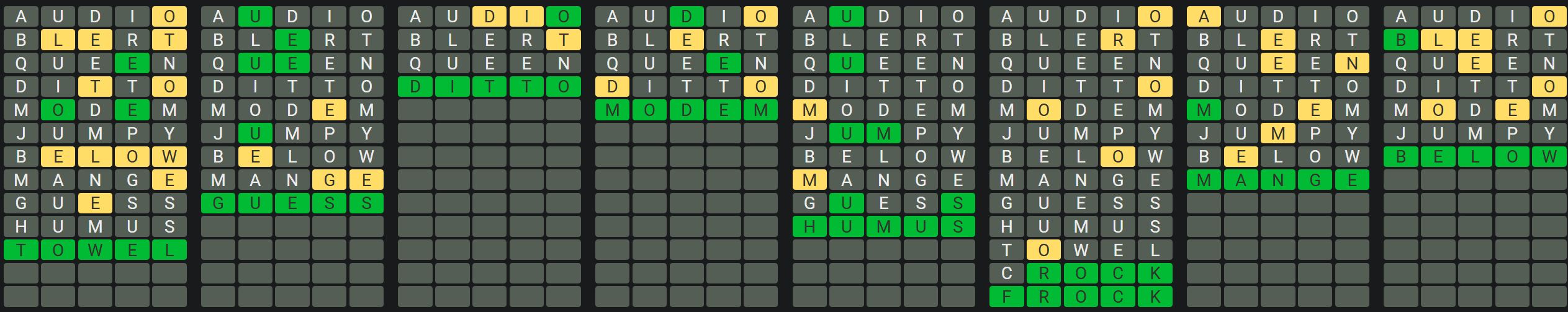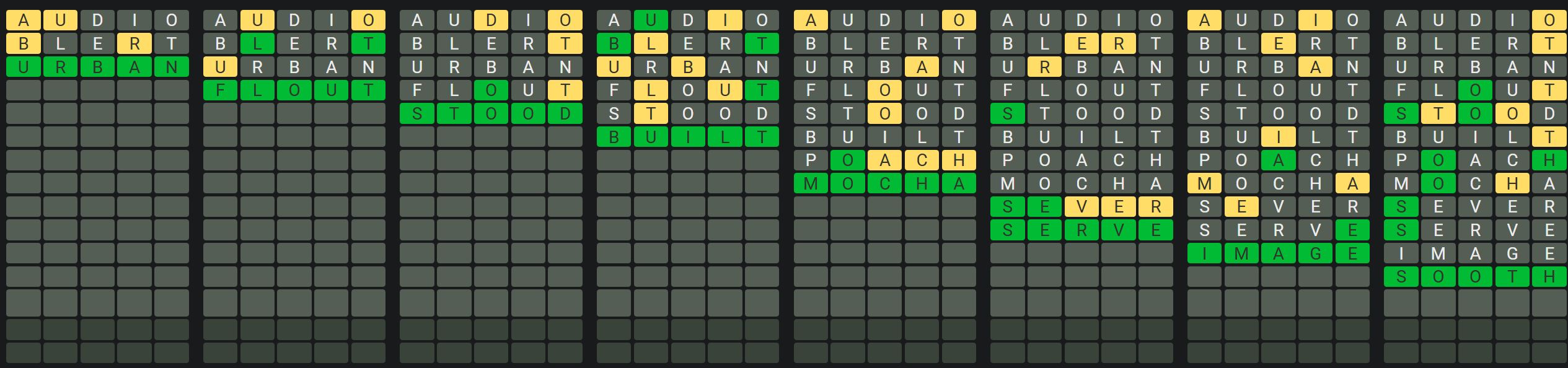 The Sequence Mode is similar to the original Octordle game with the following changes.