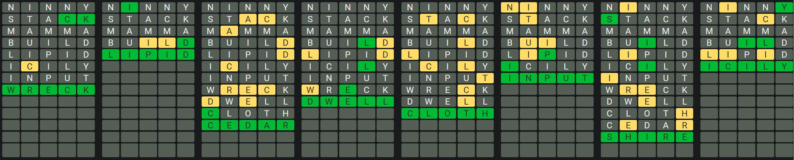 Hint 4: There is a K in word 6 only.