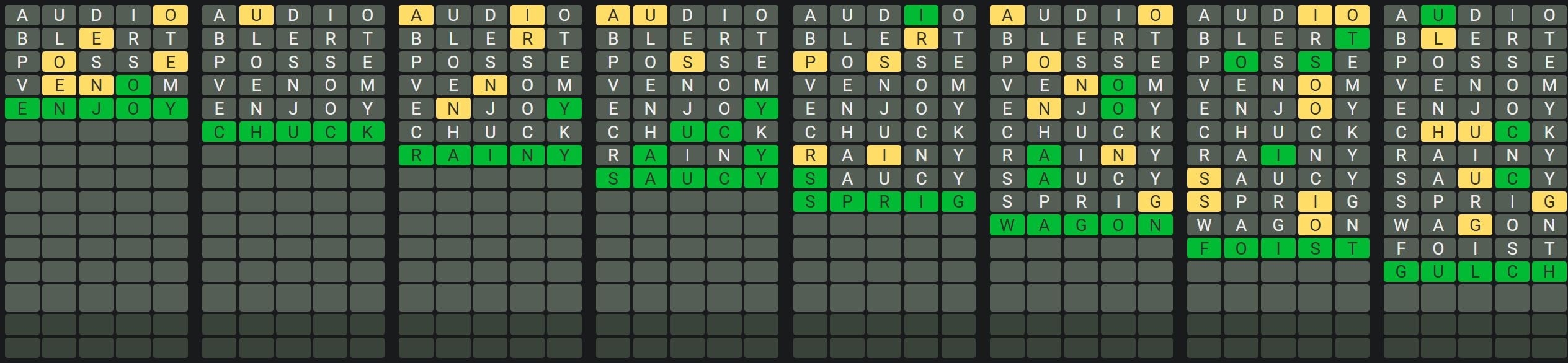 This will help you realize which letters appear in each word so you can solve the words quickly and efficiently. There may be some words that have repeated letters, so make sure you keep that in mind when guessing the words.