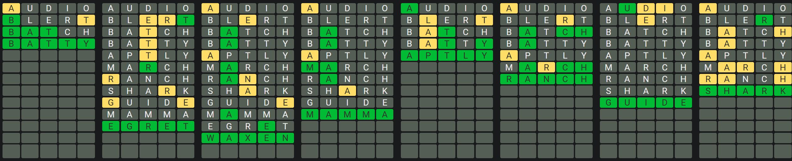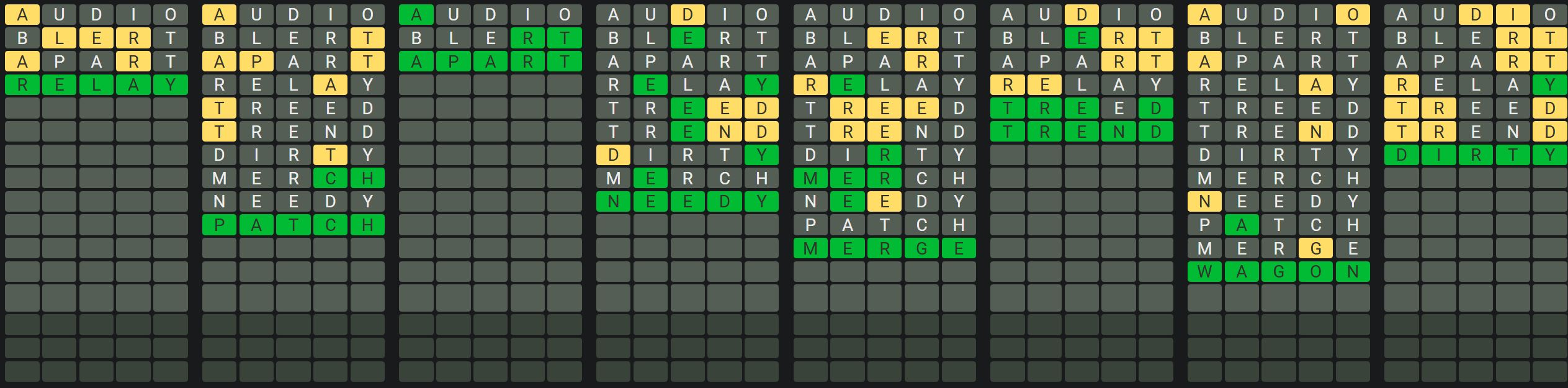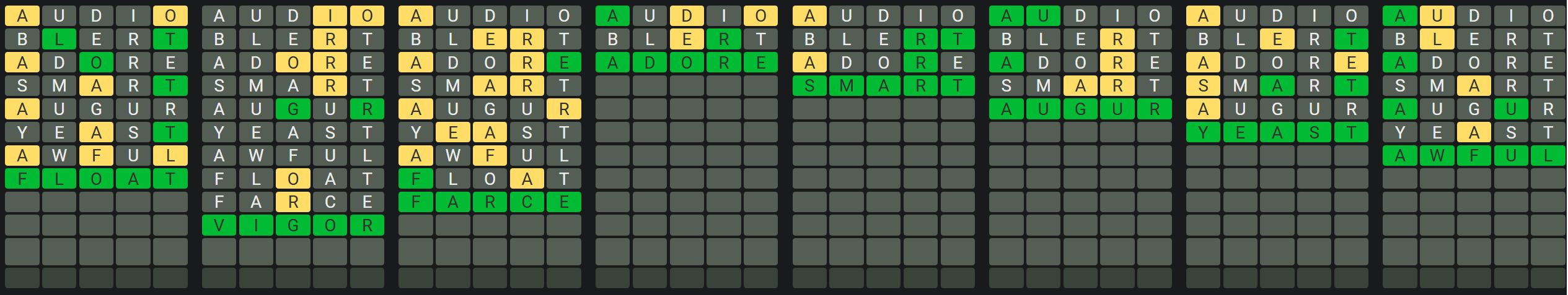 The Sequence Mode is similar to the original Octordle game with the following changes.