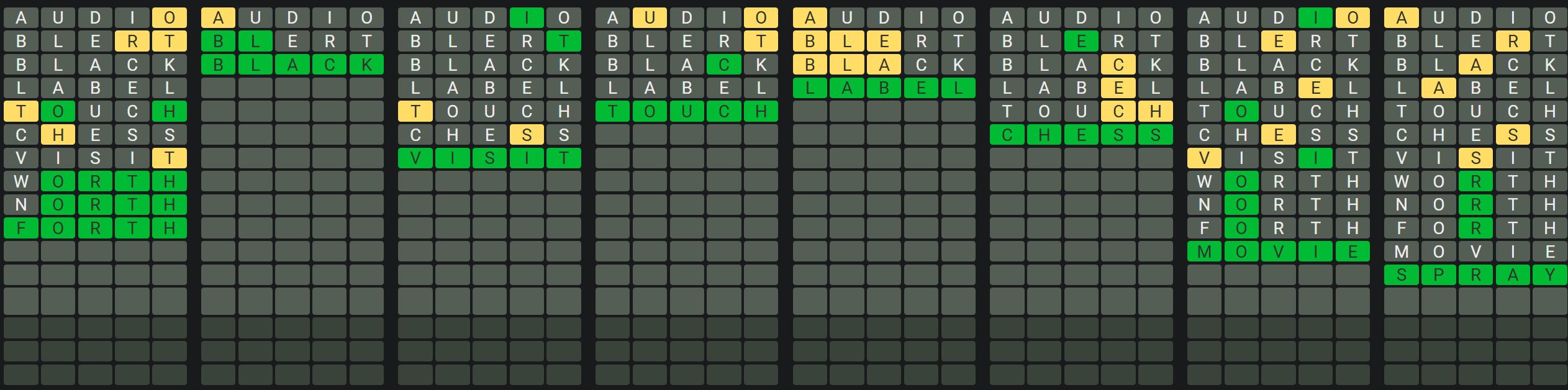 - Only one unsolved word is visible at a time. Once you solve a word, the next board is unlocked.