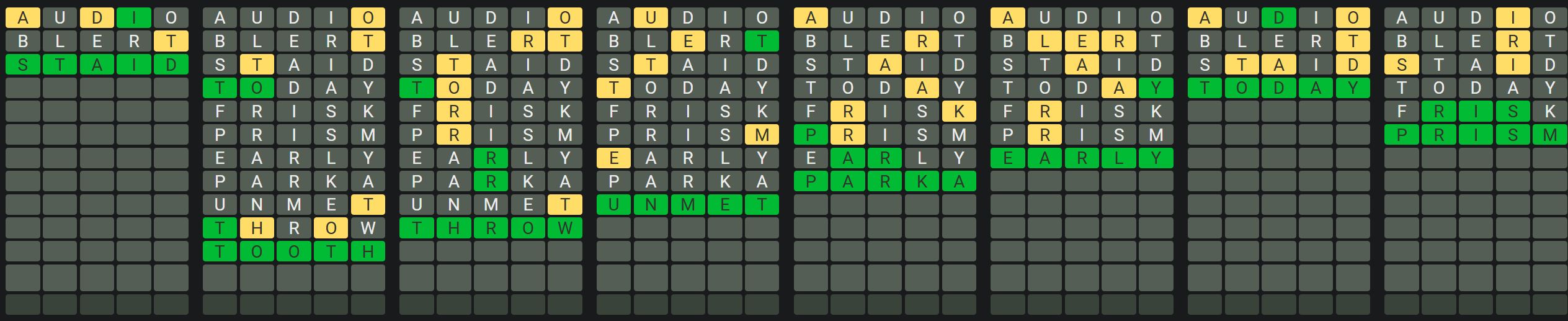 The Sequence Mode is similar to the original Octordle game with the following changes.