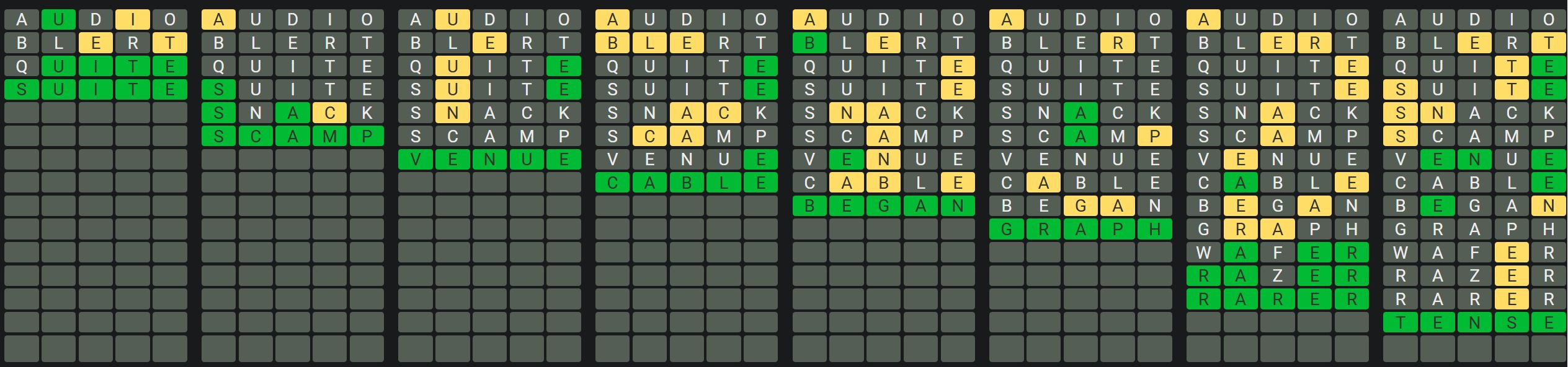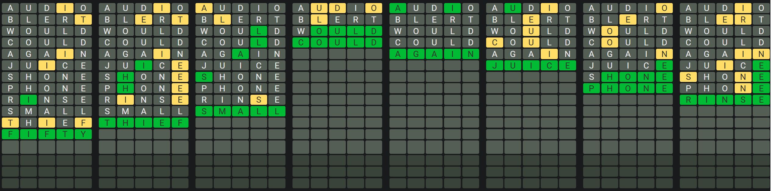 The Sequence Mode is similar to the original Octordle game with the following changes.