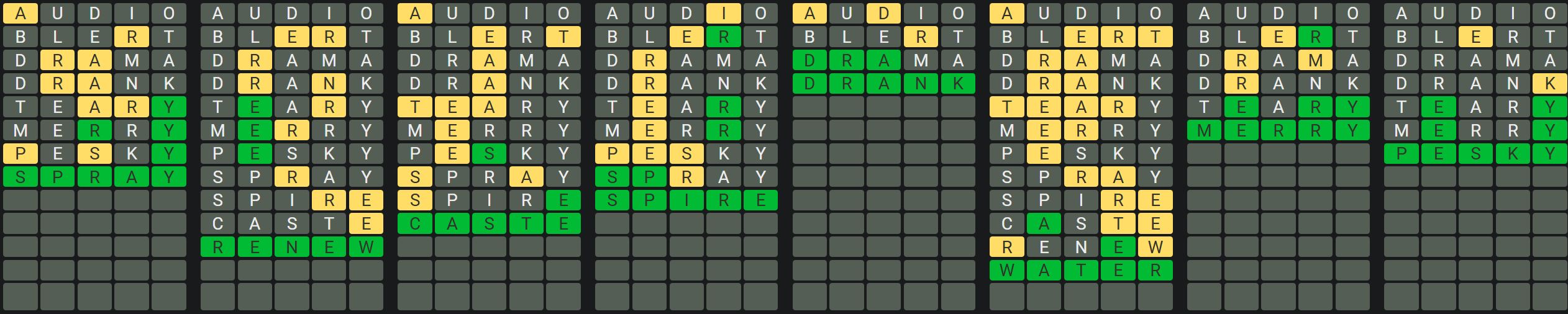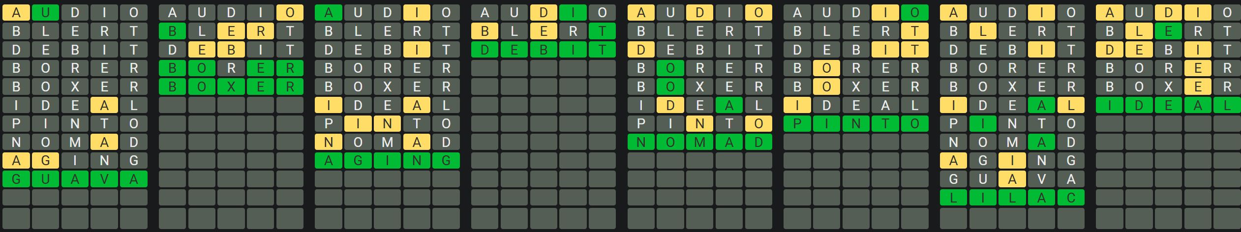 The Sequence Mode is similar to the original Octordle game with the following changes.