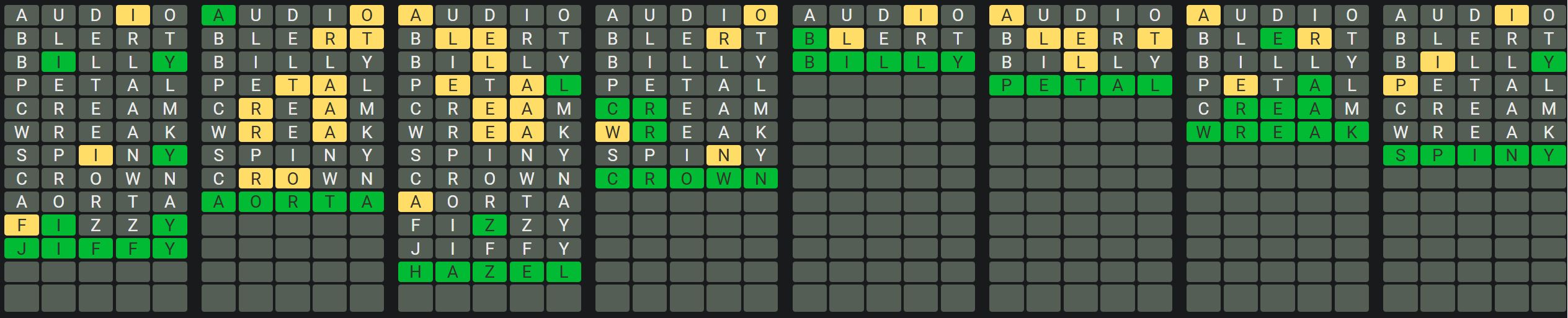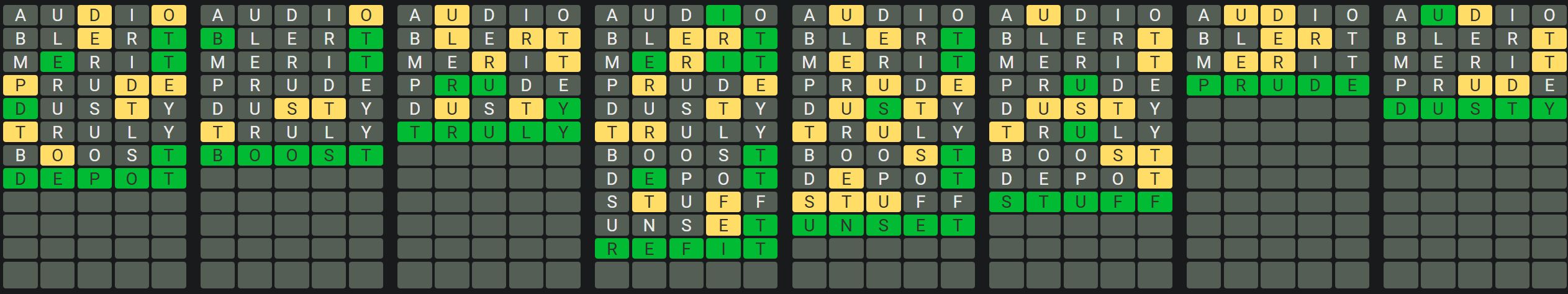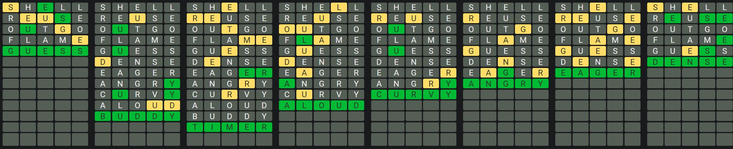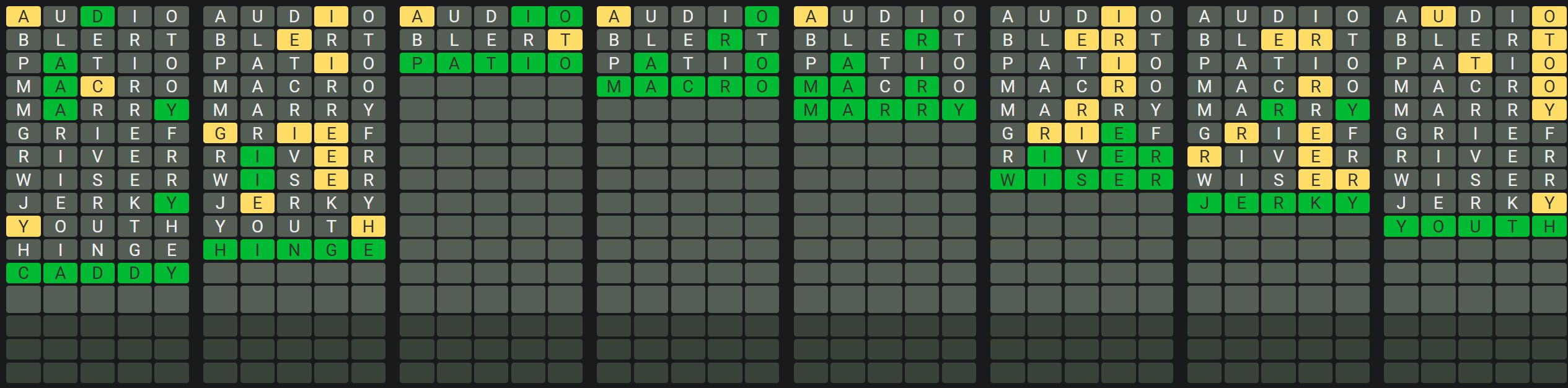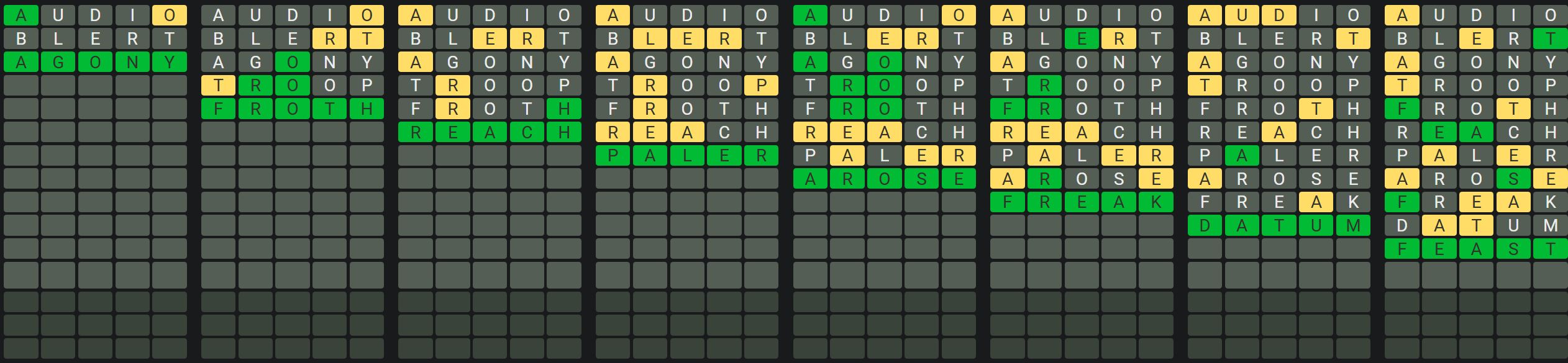 The Sequence Mode is similar to the original Octordle game with the following changes.