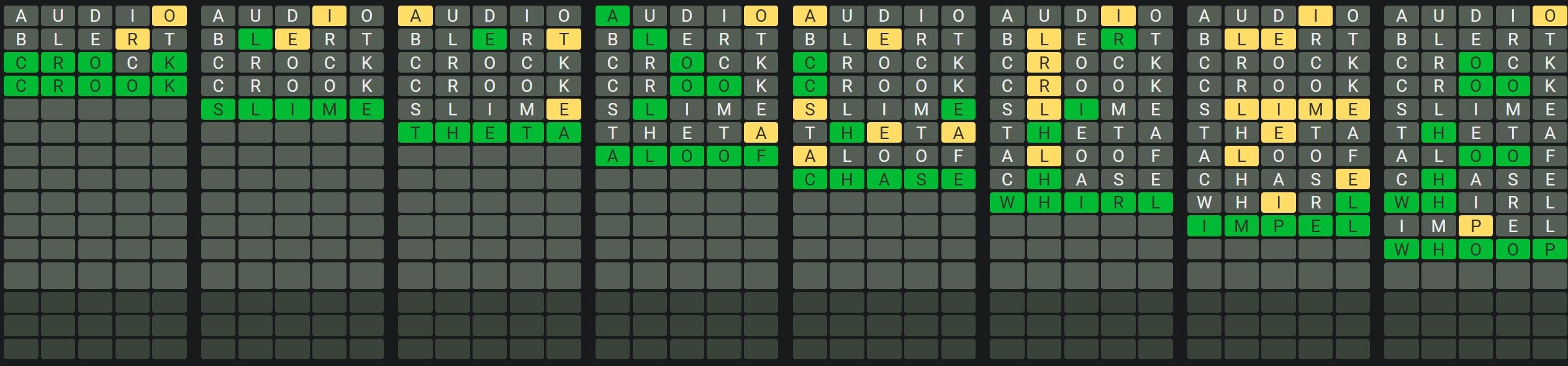 The Sequence Mode is similar to the original Octordle game with the following changes.