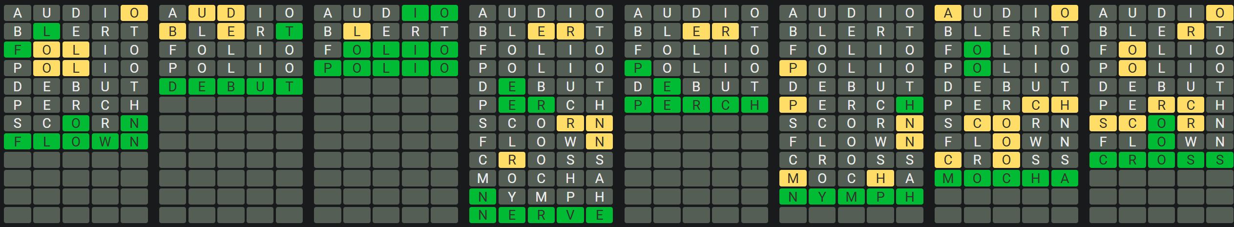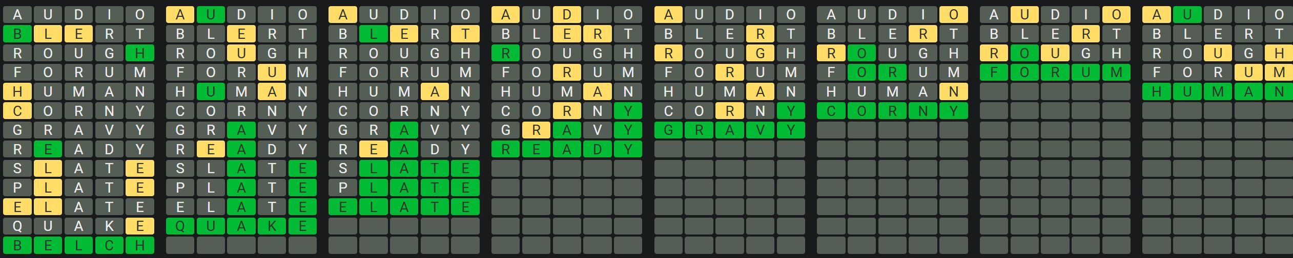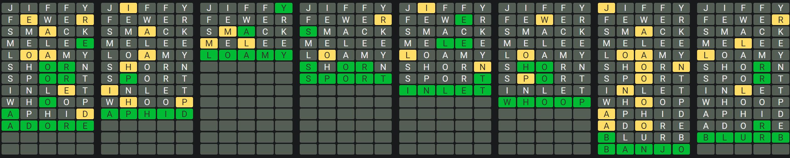 The Sequence Mode is similar to the original Octordle game with the following changes.