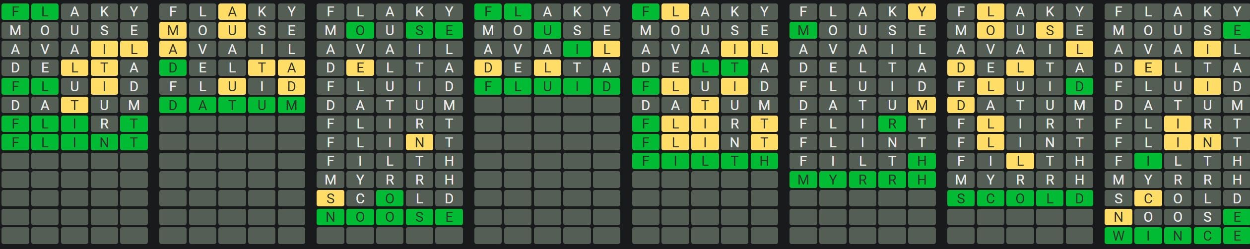 The Sequence Mode is similar to the original Octordle game with the following changes.