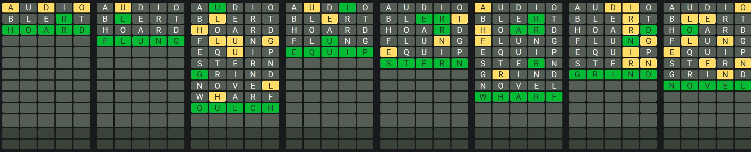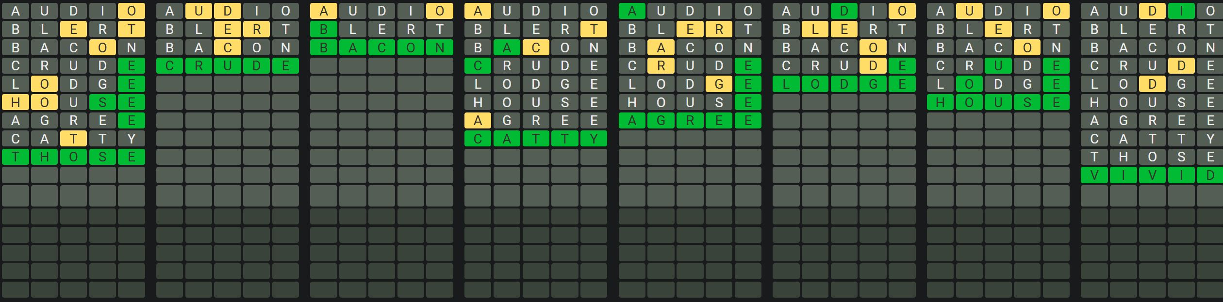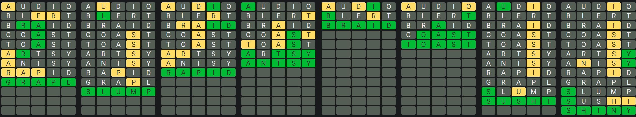 The Sequence Mode is similar to the original Octordle game with the following changes.