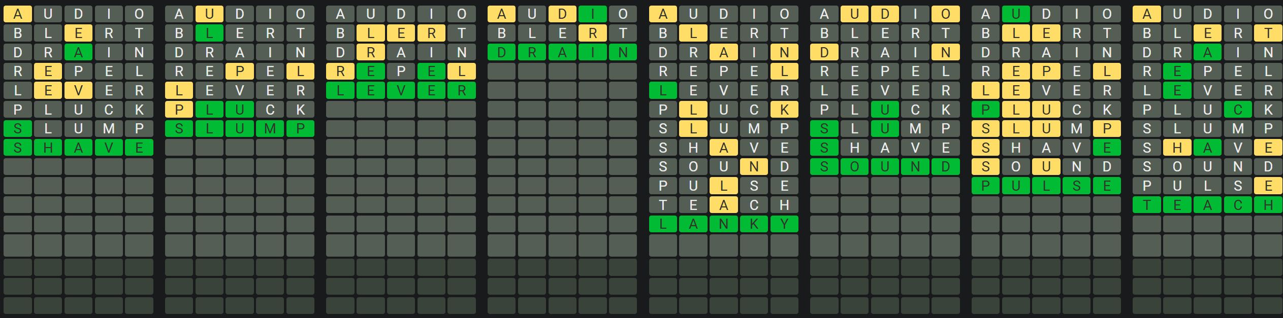 - Only one unsolved word is visible at a time. Once you solve a word, the next board is unlocked.