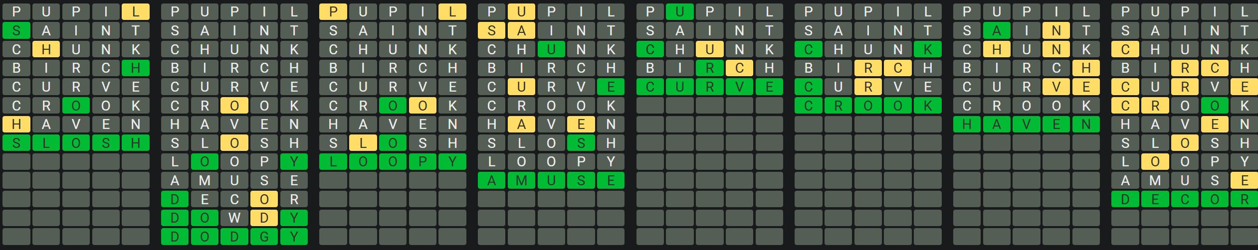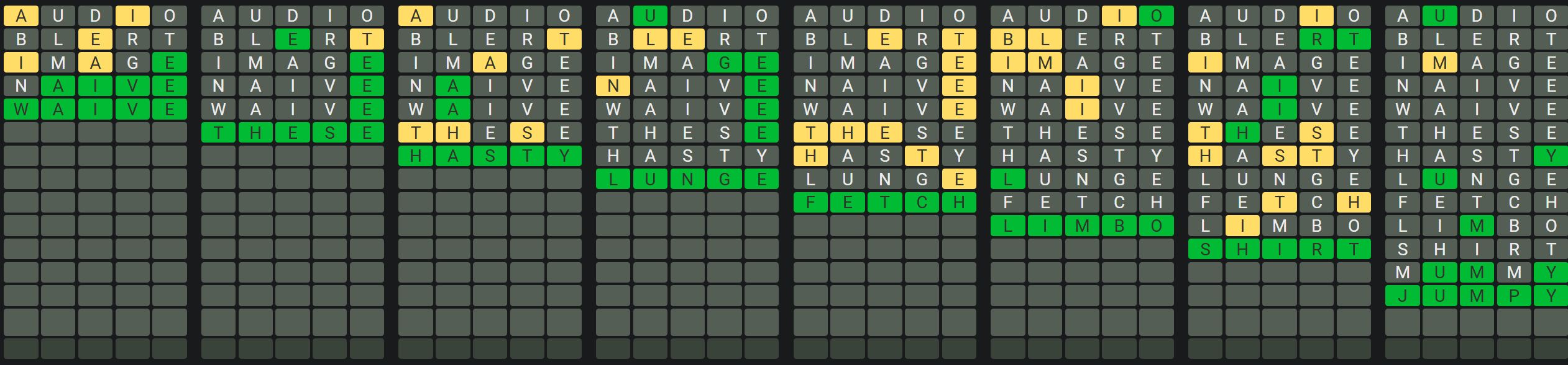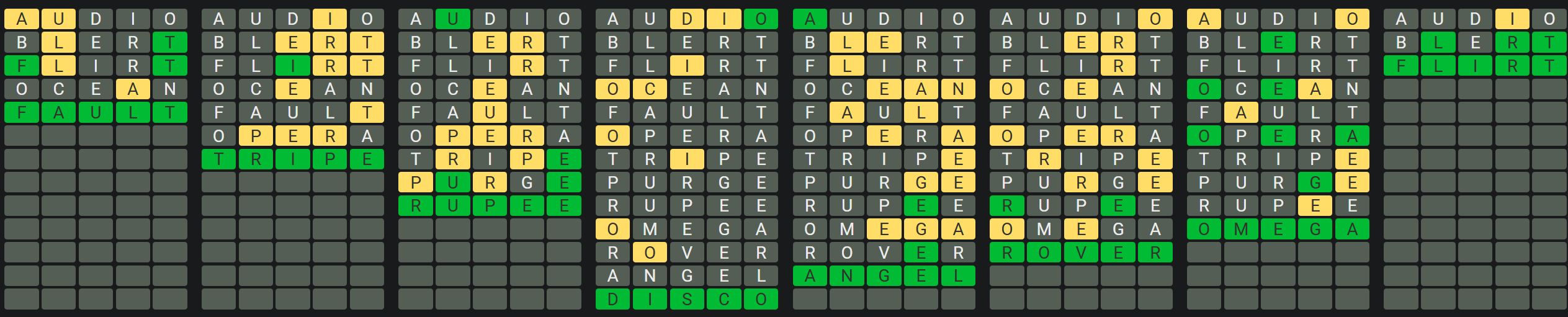 The Sequence Mode is similar to the original Octordle game with the following changes.