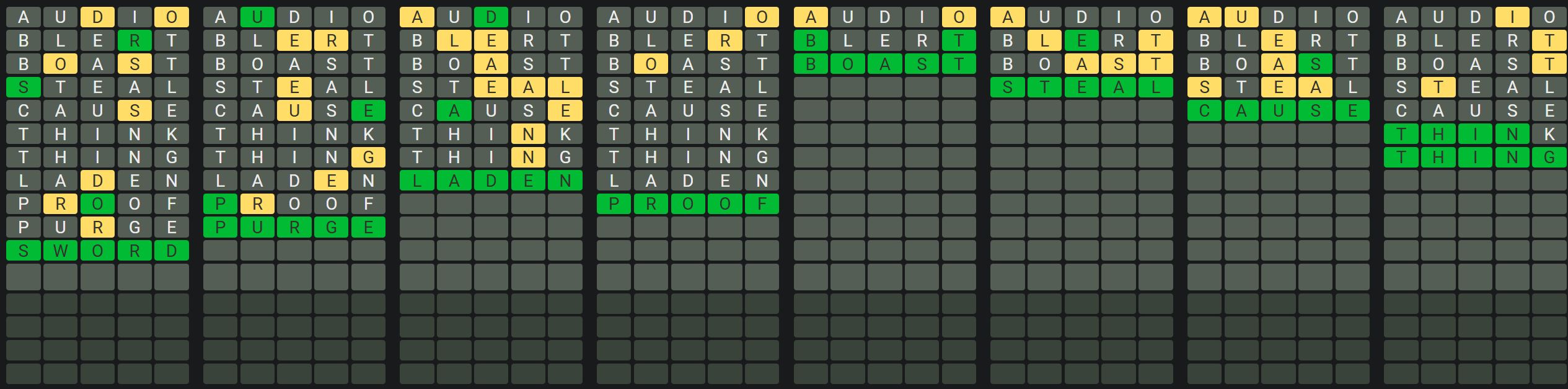 - Only one unsolved word is visible at a time. Once you solve a word, the next board is unlocked.