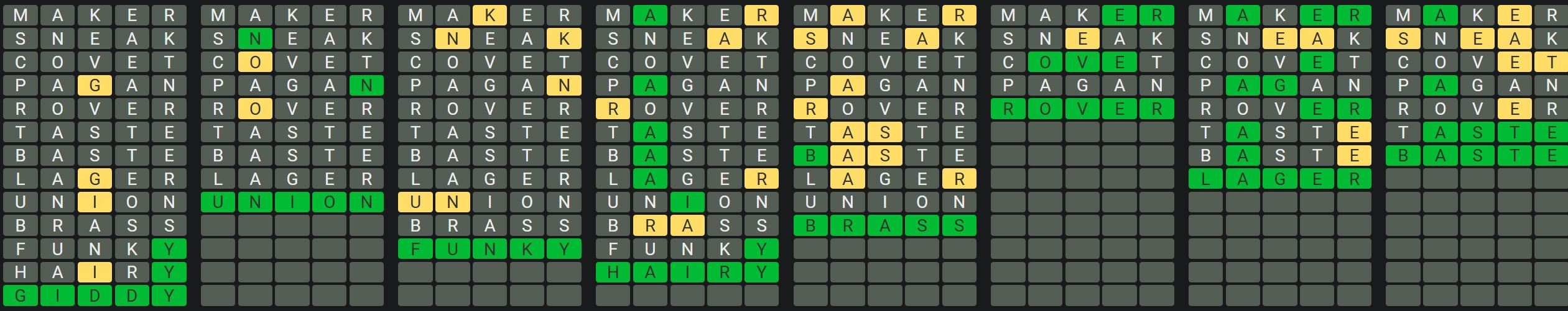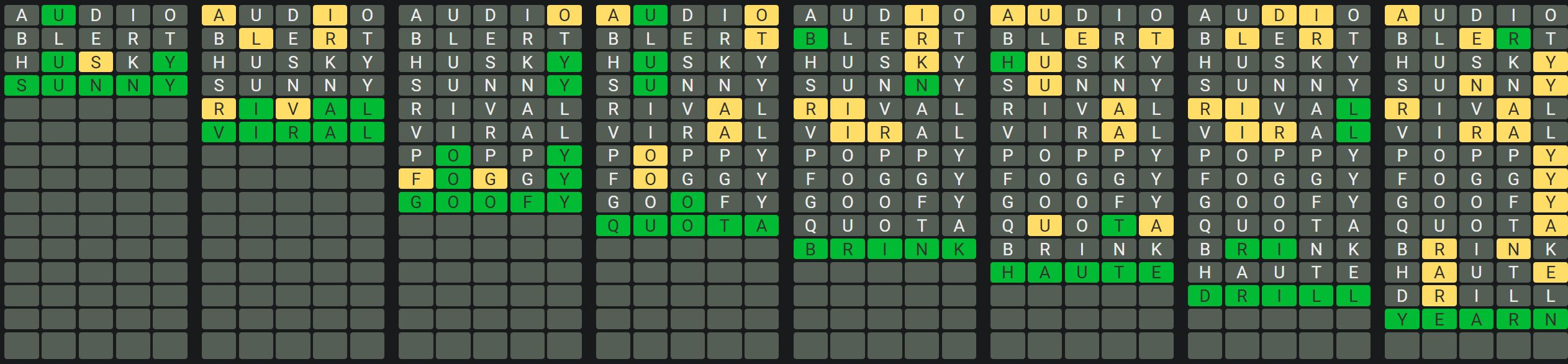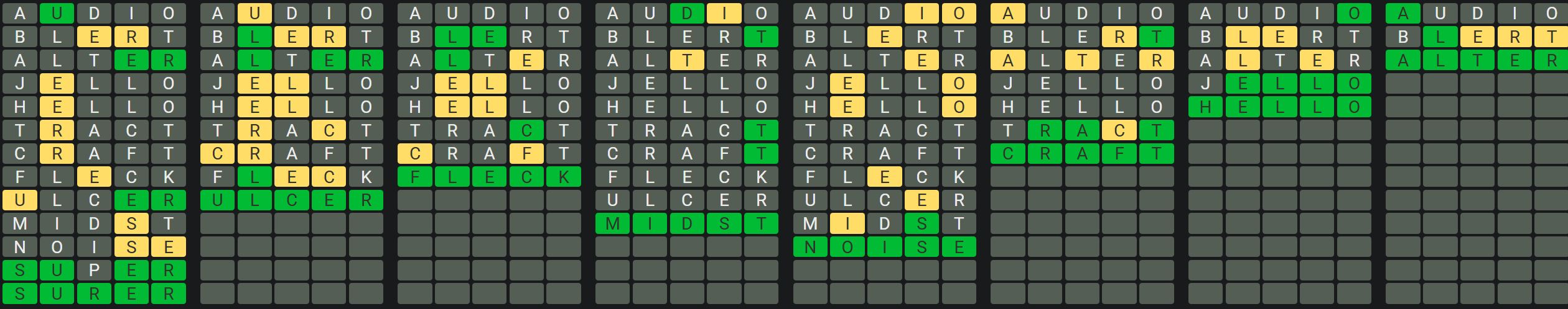 The Sequence Mode is similar to the original Octordle game with the following changes.