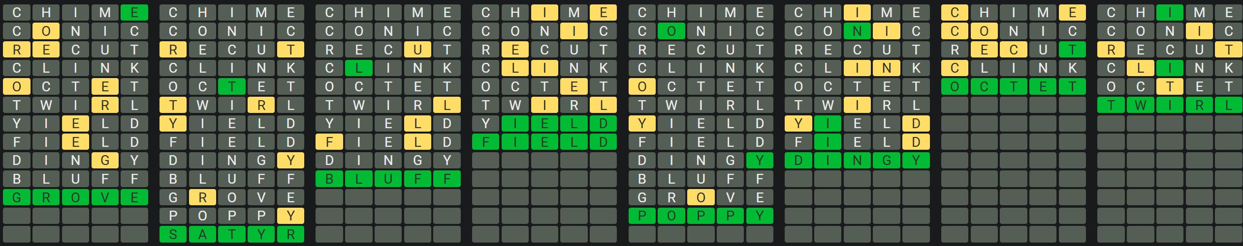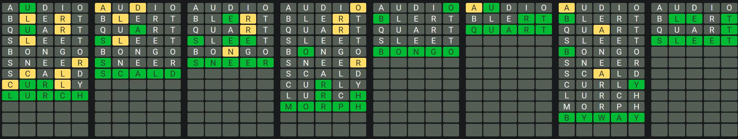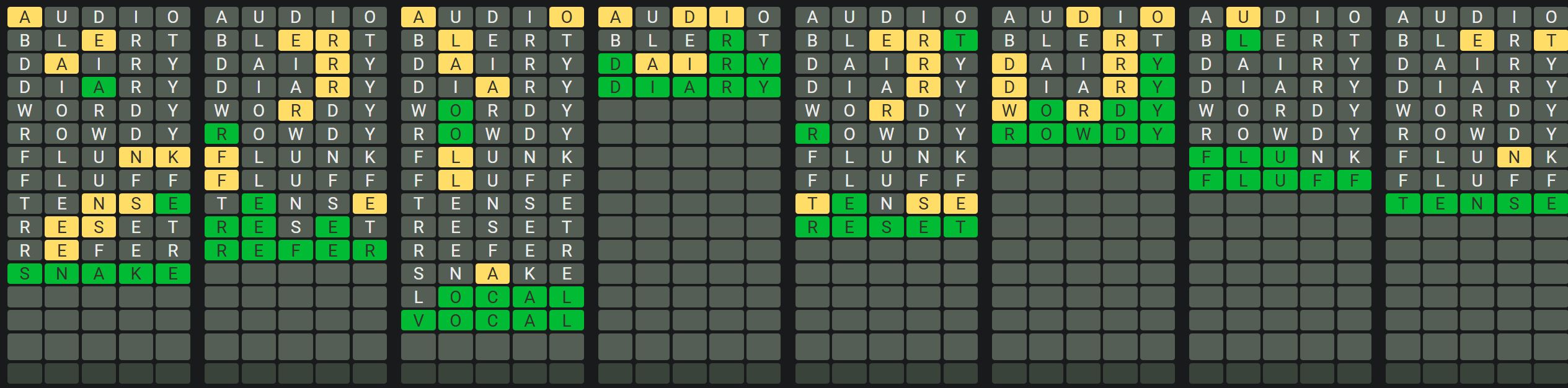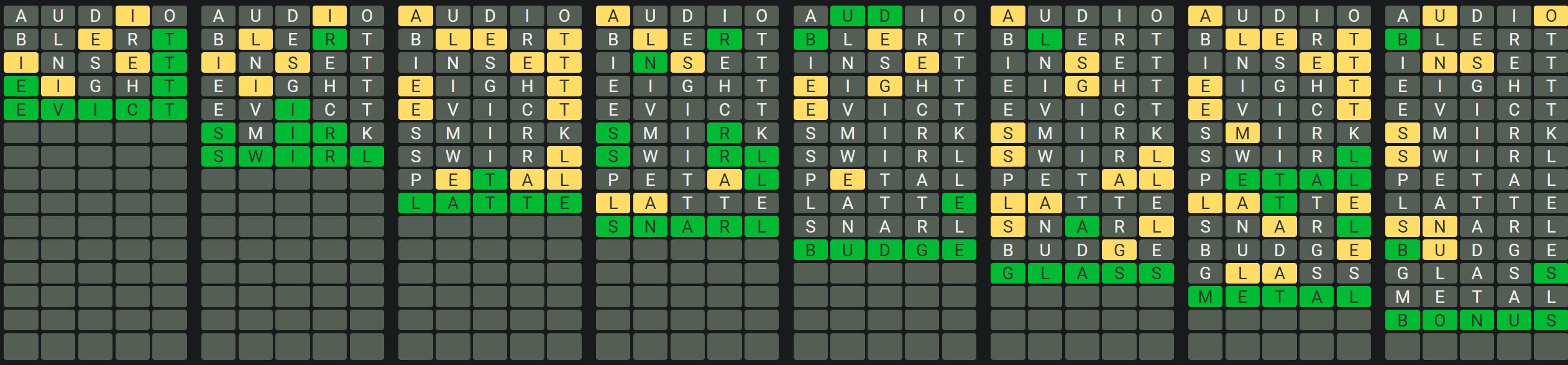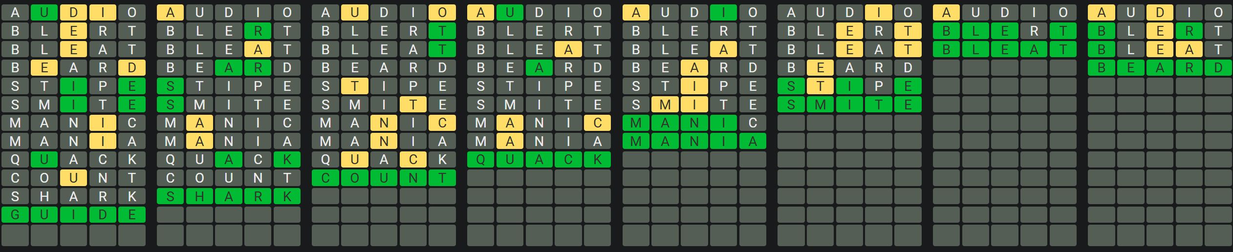 The Sequence Mode is similar to the original Octordle game with the following changes.