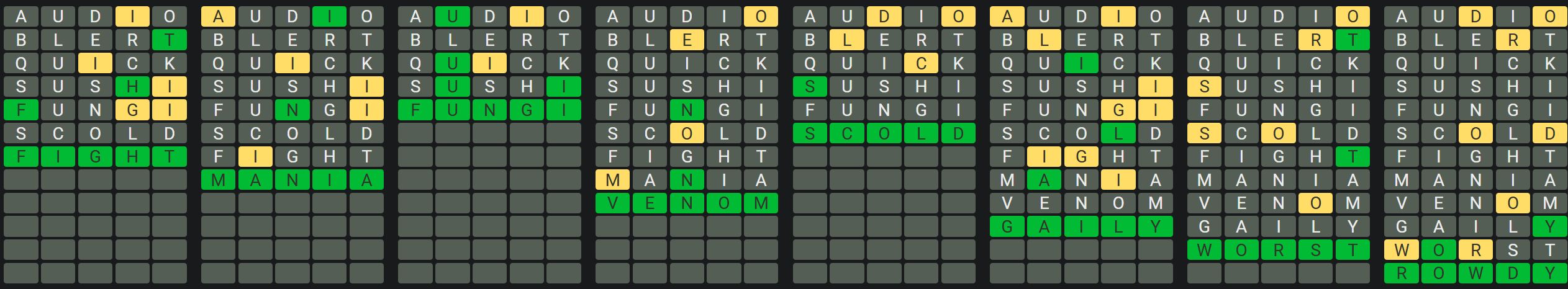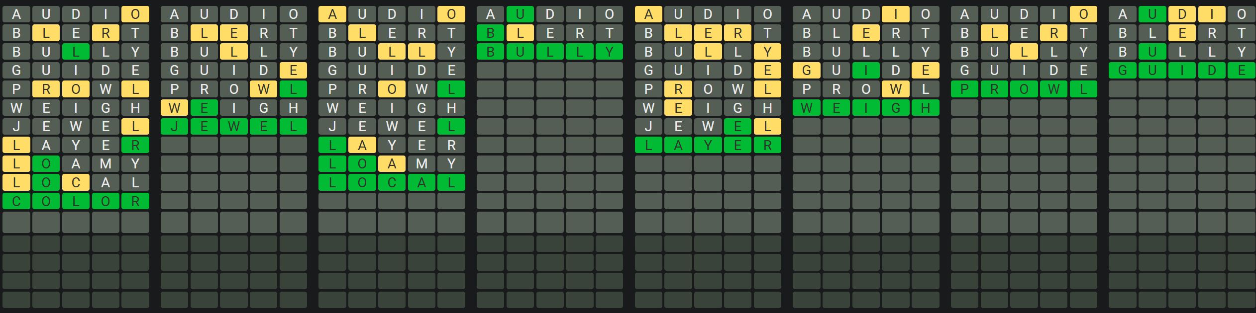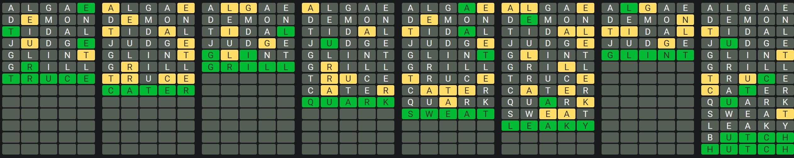 The Sequence Mode is similar to the original Octordle game with the following changes.