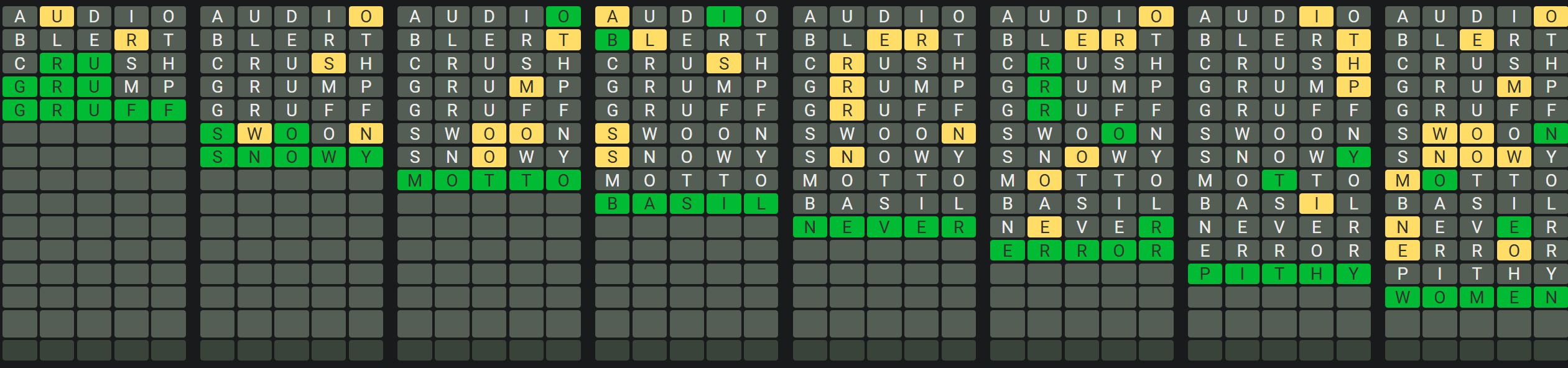 Hint 6: There are no double letters in any words today.