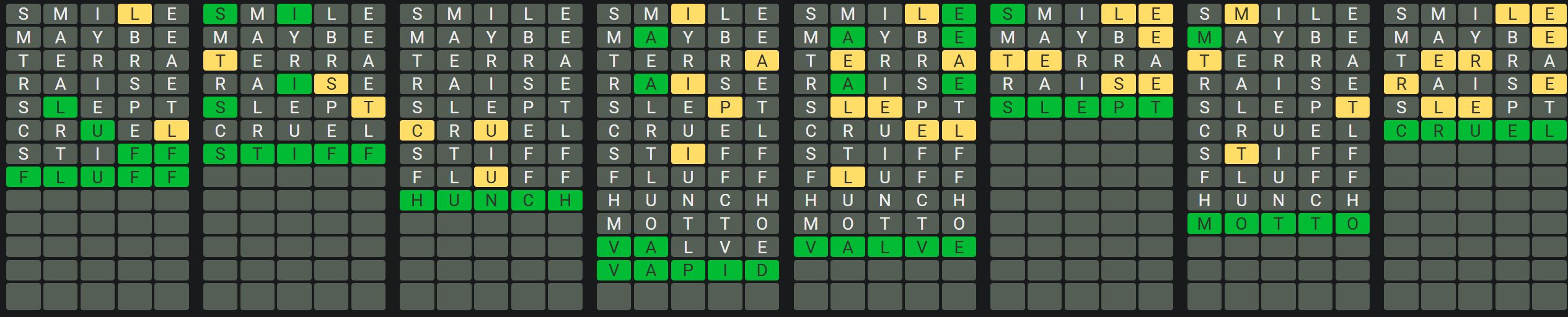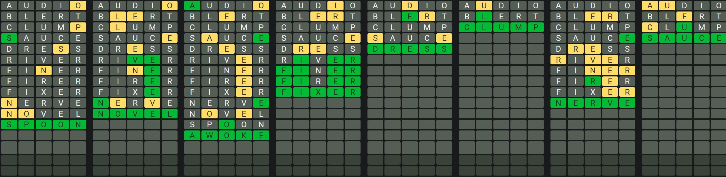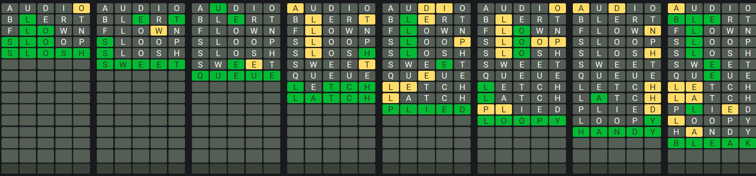 The Sequence Mode is similar to the original Octordle game with the following changes.