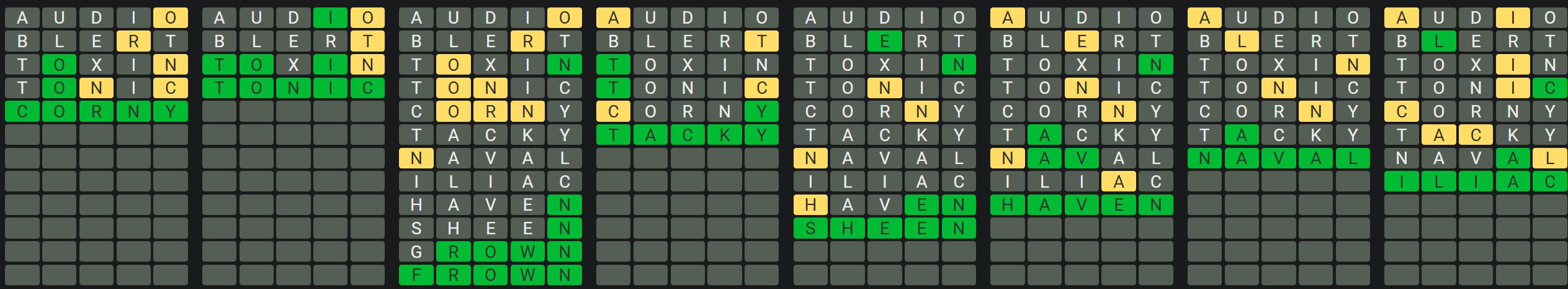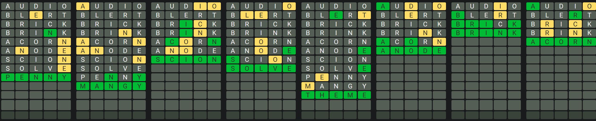 - Only one unsolved word is visible at a time. Once you solve a word, the next board is unlocked.