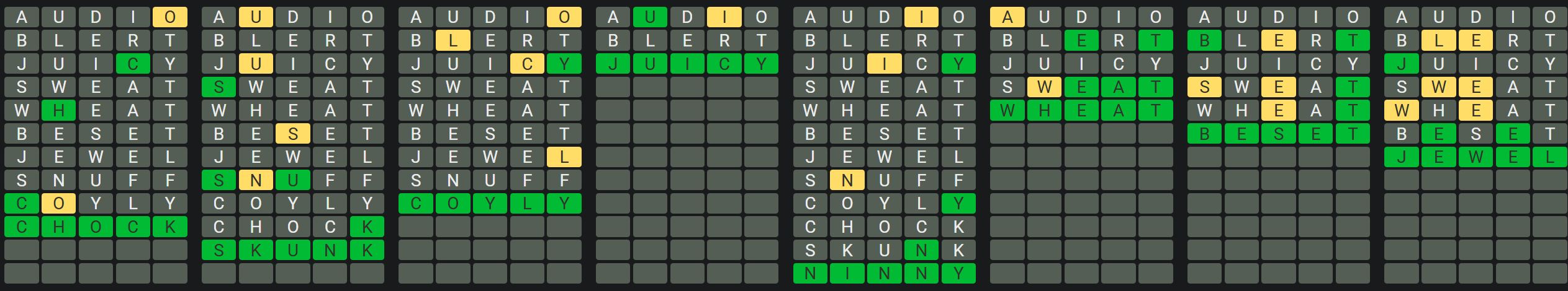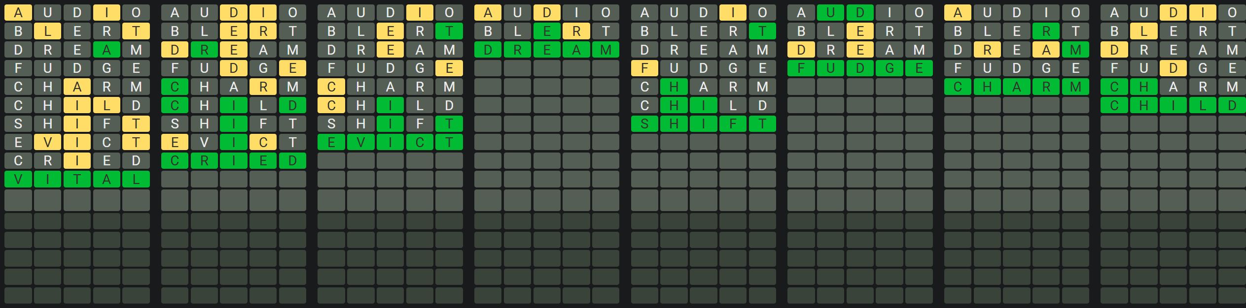 The Sequence Mode is similar to the original Octordle game with the following changes.