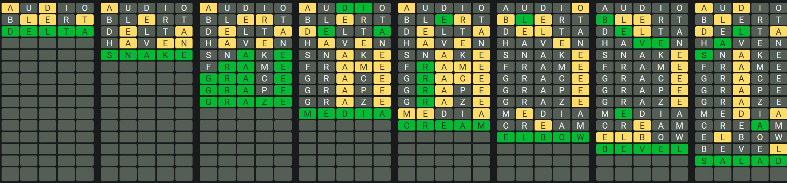 - Only one unsolved word is visible at a time. Once you solve a word, the next board is unlocked.
