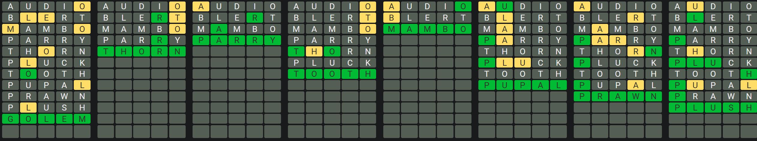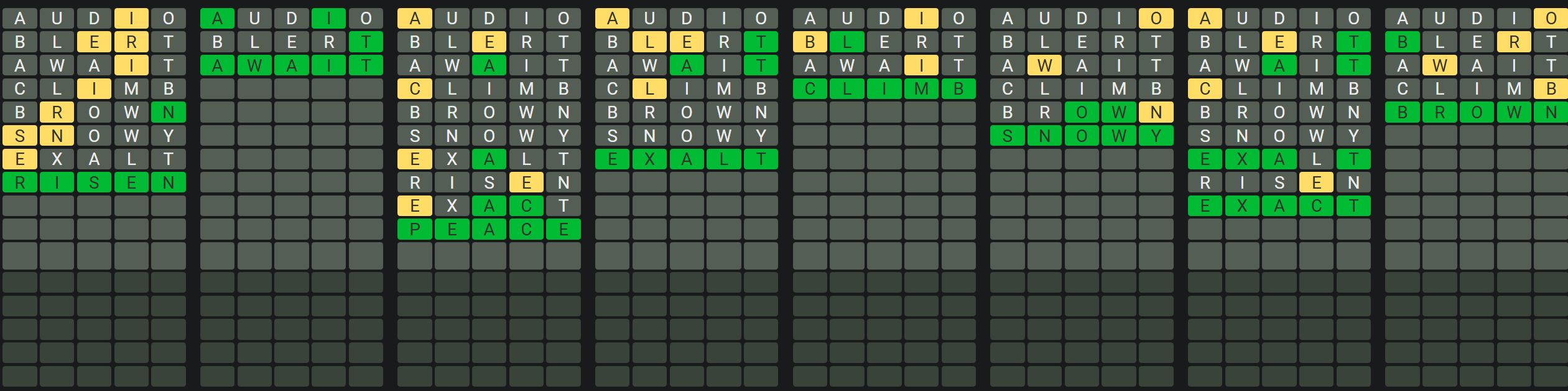 The Sequence Mode is similar to the original Octordle game with the following changes.
