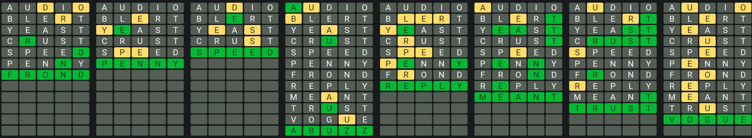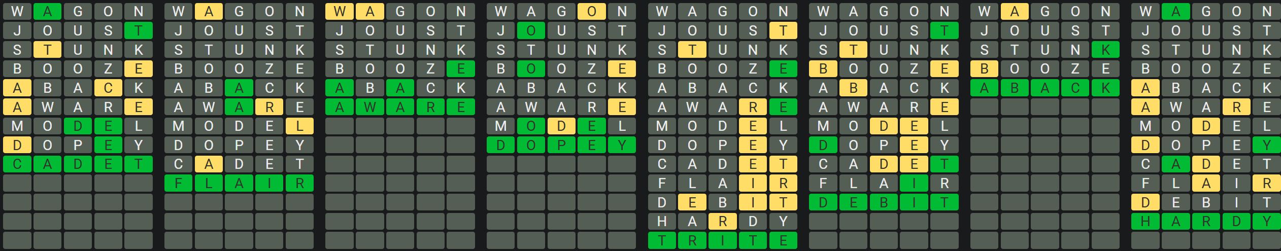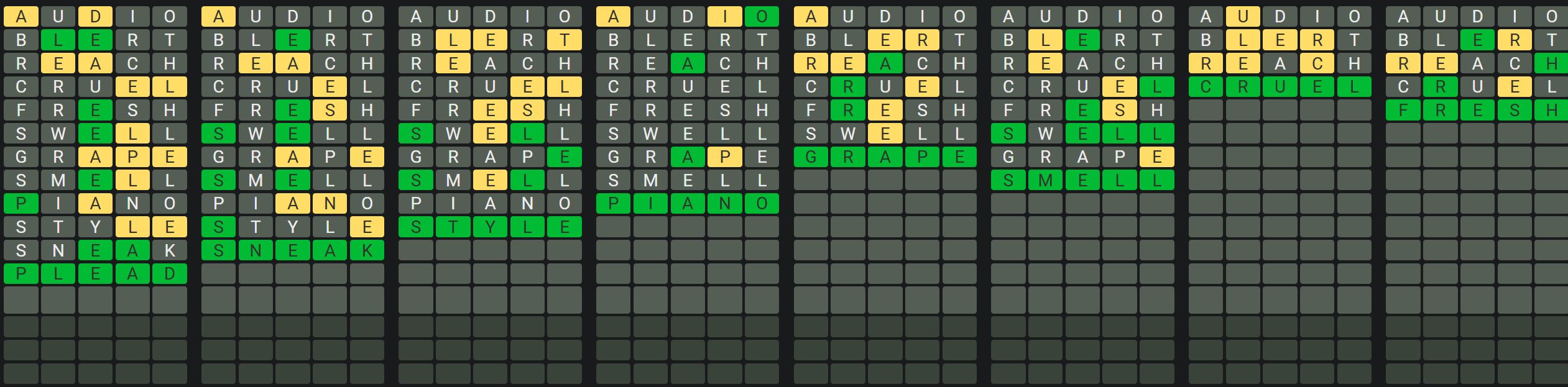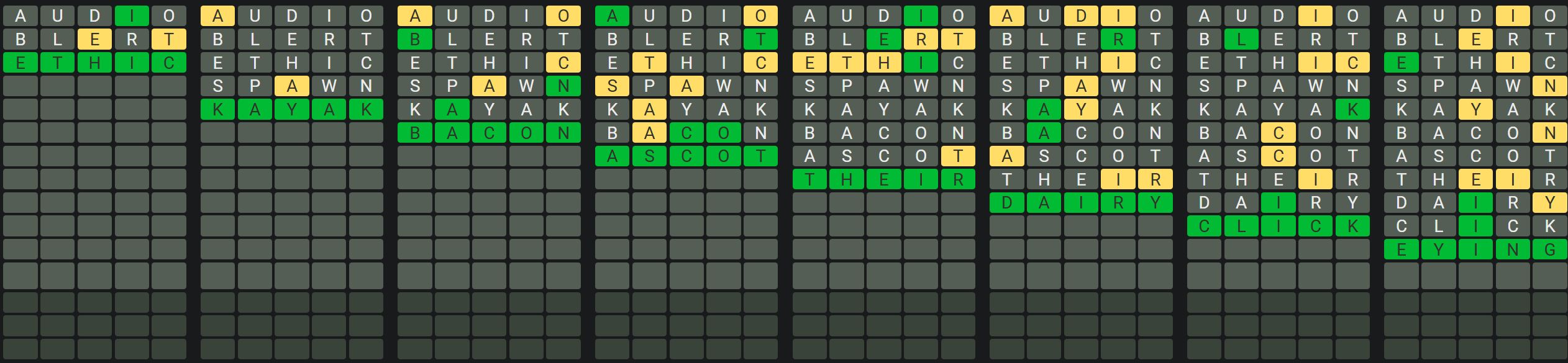 The Sequence Mode is similar to the original Octordle game with the following changes.