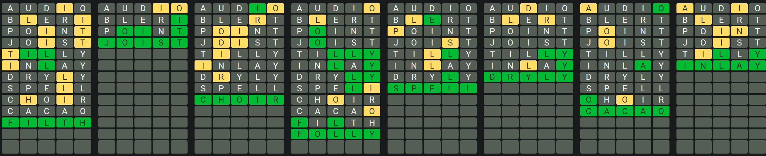- Only one unsolved word is visible at a time. Once you solve a word, the next board is unlocked.