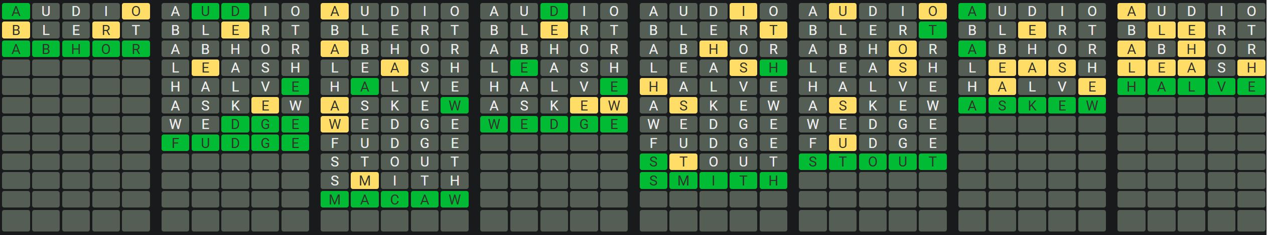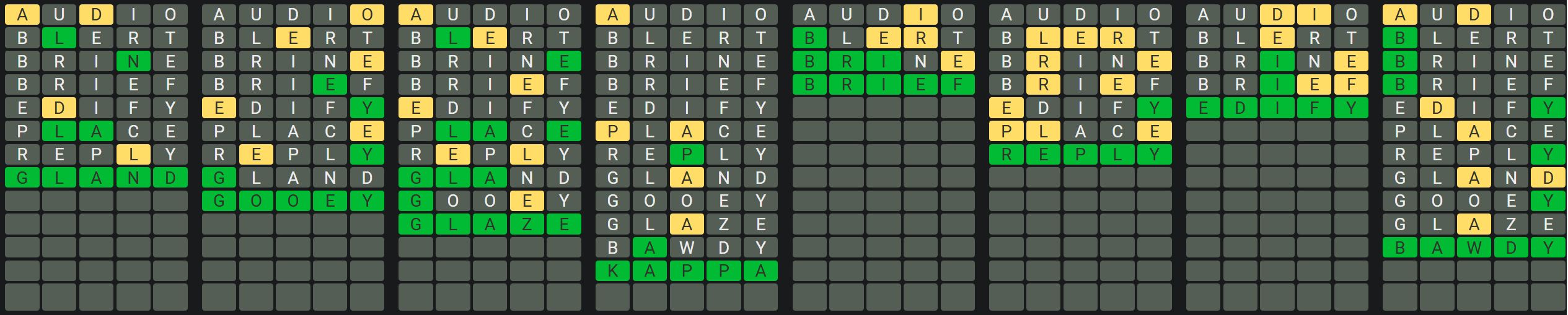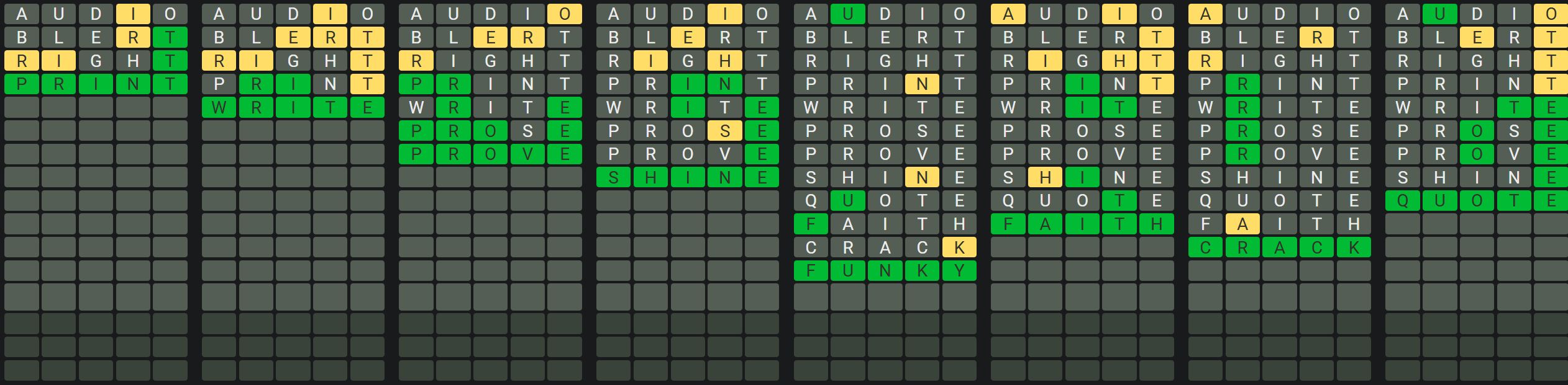 The Sequence Mode is similar to the original Octordle game with the following changes.