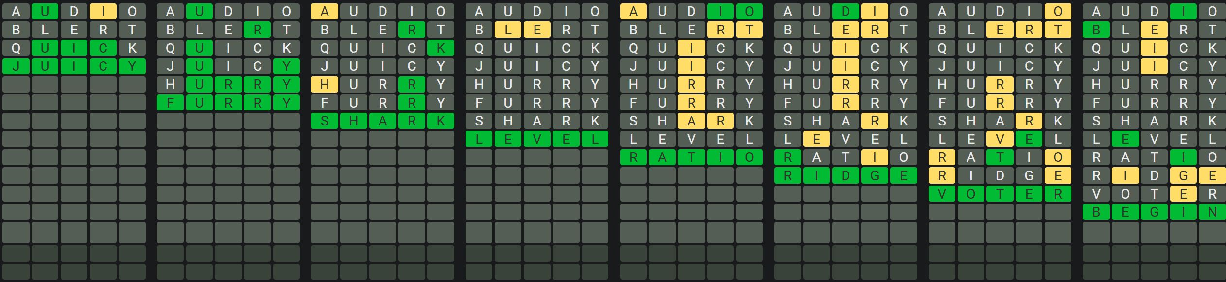 This will help you realize which letters appear in each word so you can solve the words quickly and efficiently. There may be some words that have repeated letters, so make sure you keep that in mind when guessing the words.