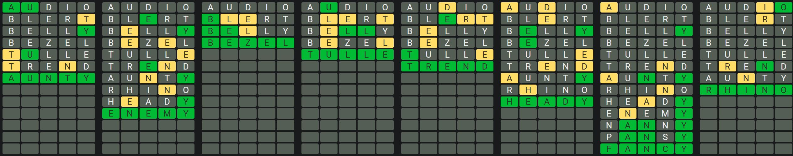 - Only one unsolved word is visible at a time. Once you solve a word, the next board is unlocked.