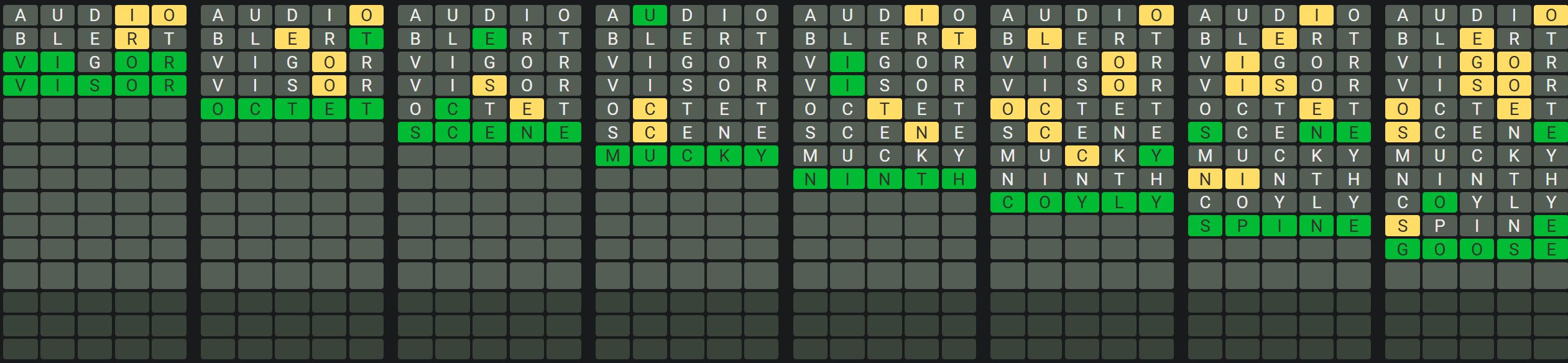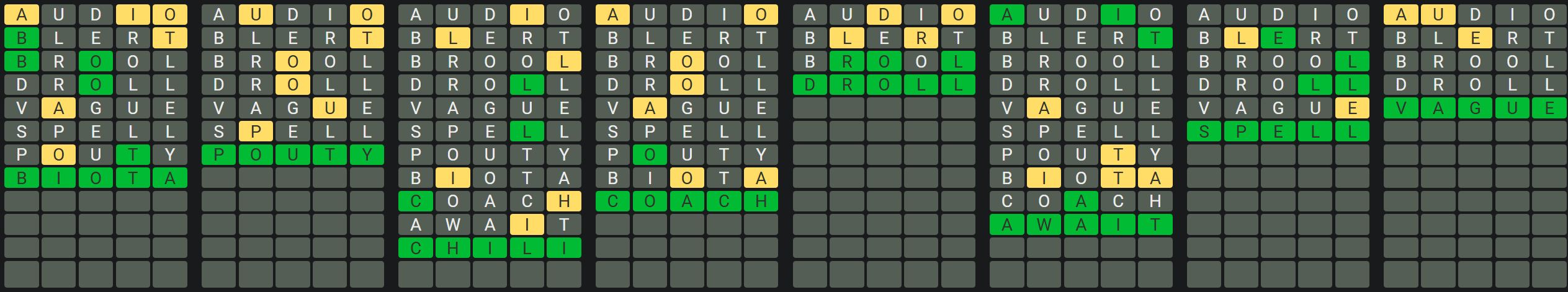 The Sequence Mode is similar to the original Octordle game with the following changes.