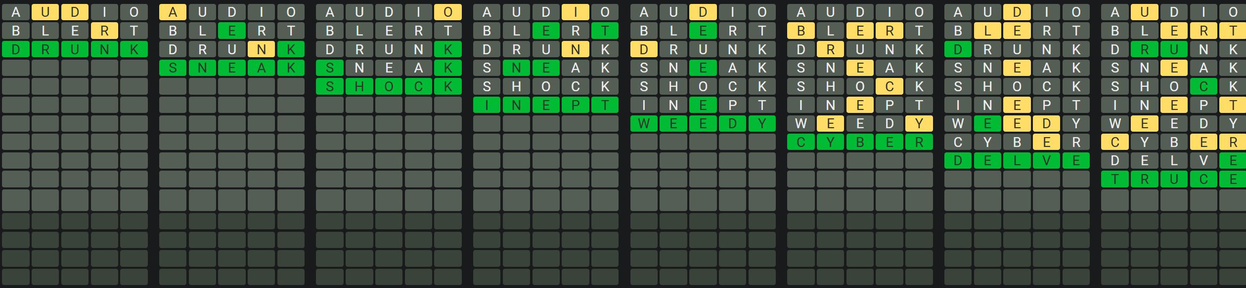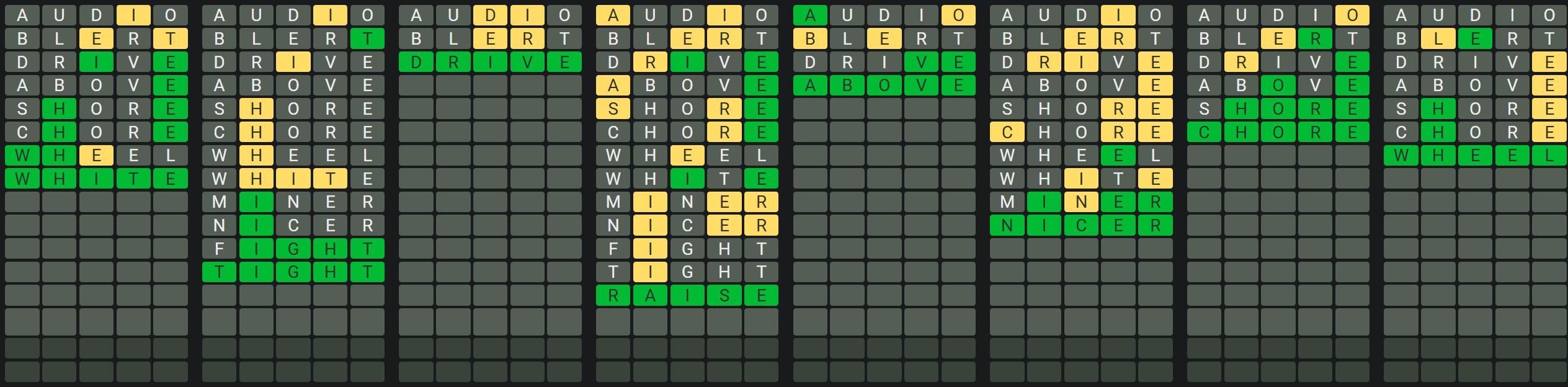 - Only one unsolved word is visible at a time. Once you solve a word, the next board is unlocked.
