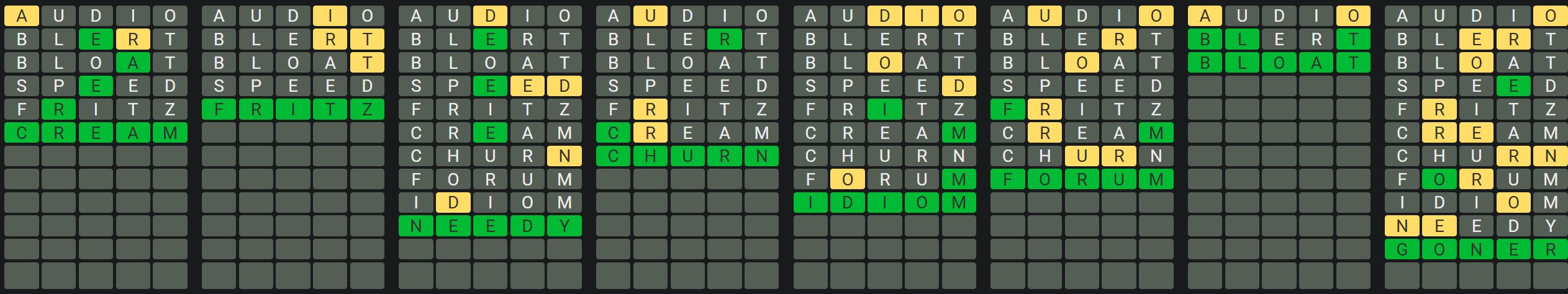 The Sequence Mode is similar to the original Octordle game with the following changes.