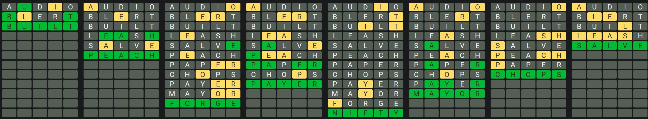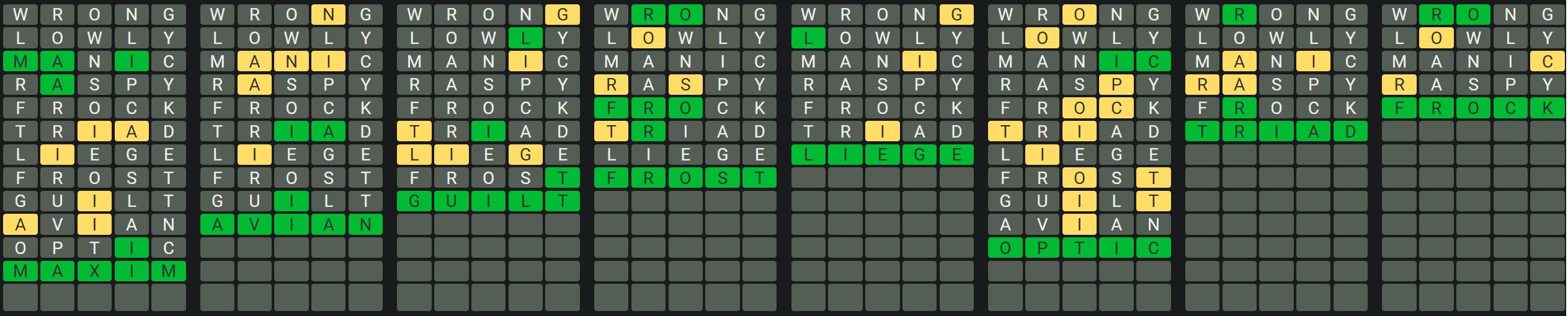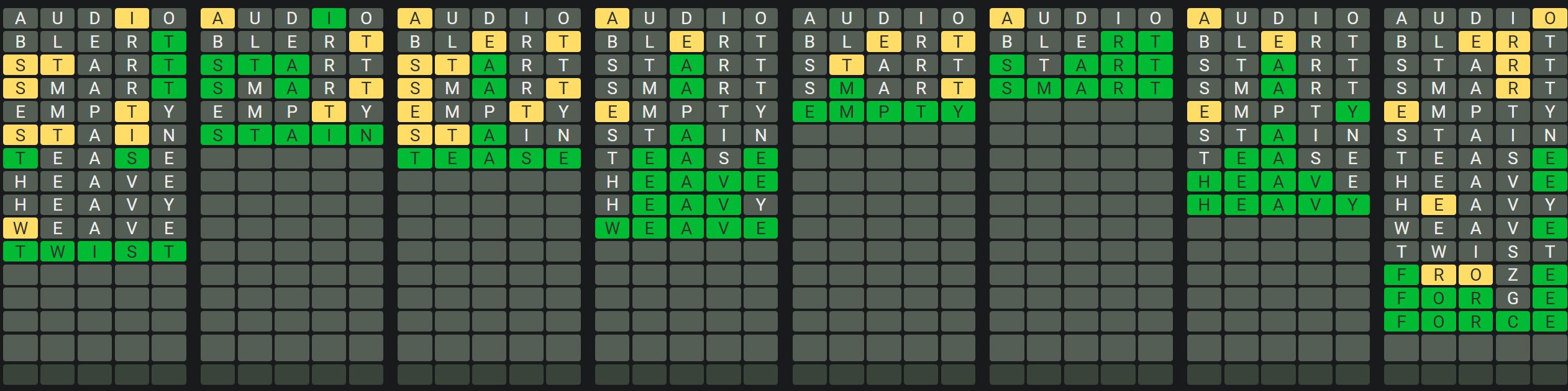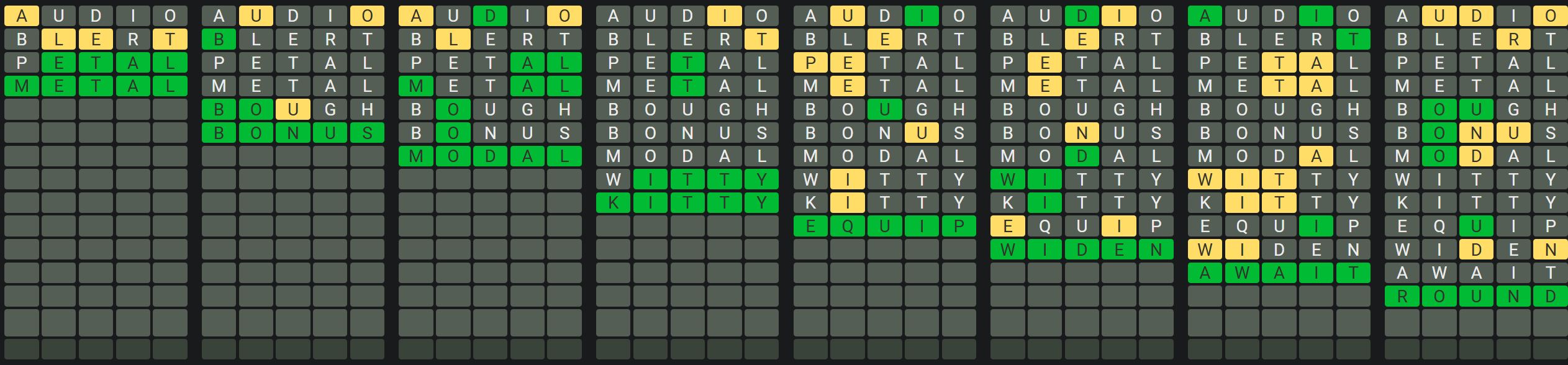 The Sequence Mode is similar to the original Octordle game with the following changes.