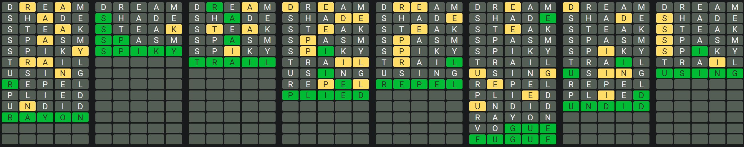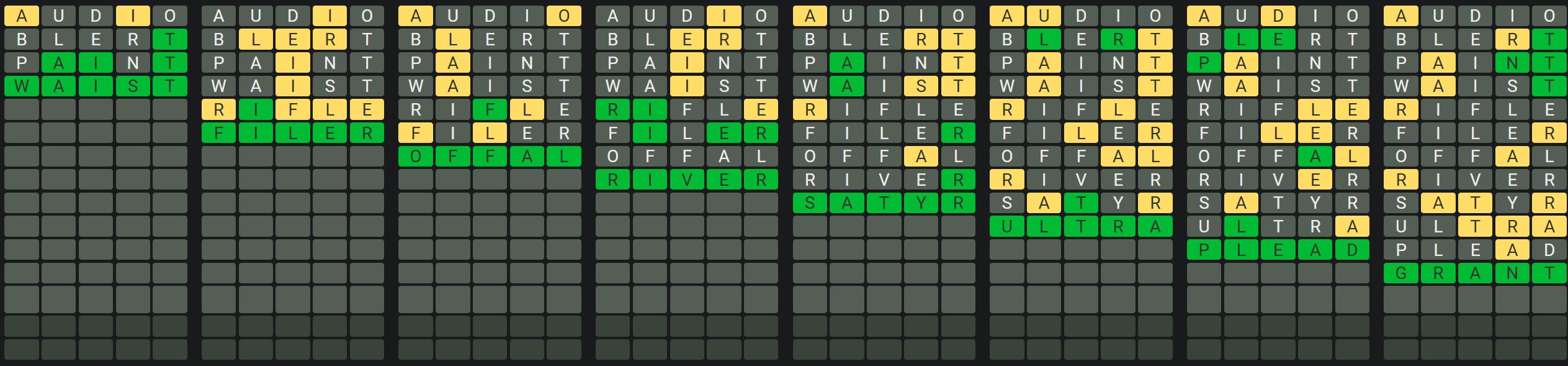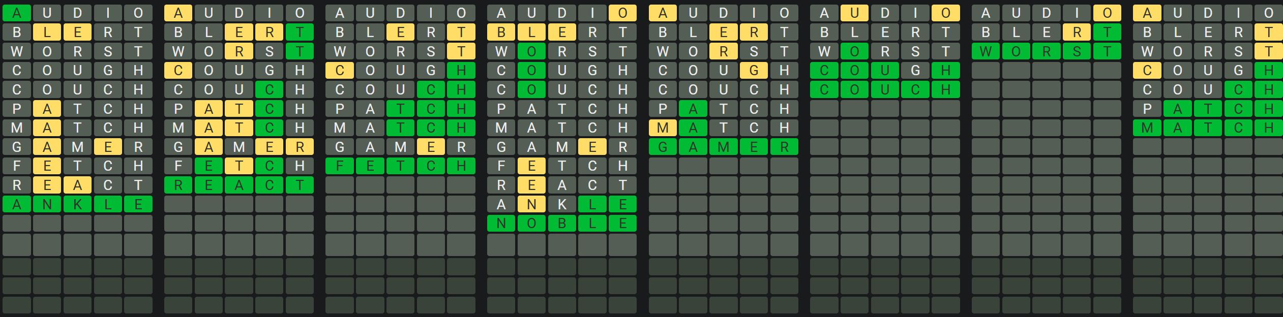The Sequence Mode is similar to the original Octordle game with the following changes.