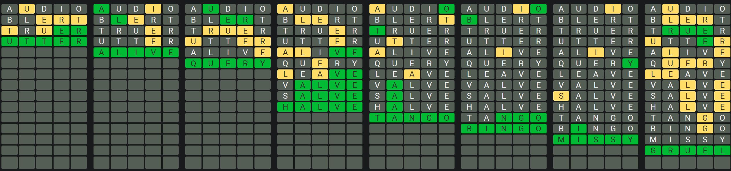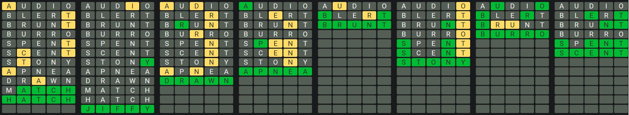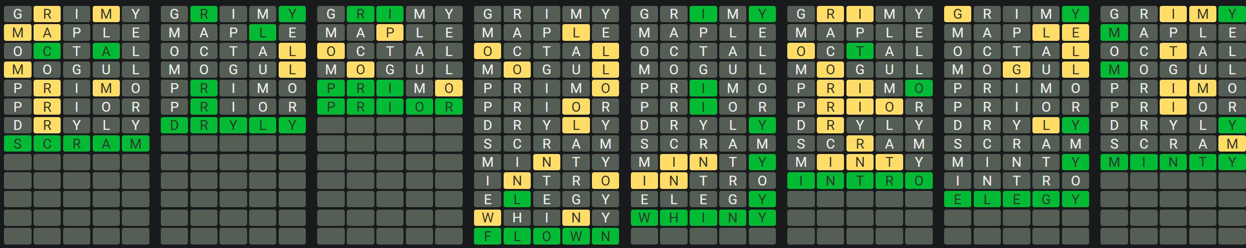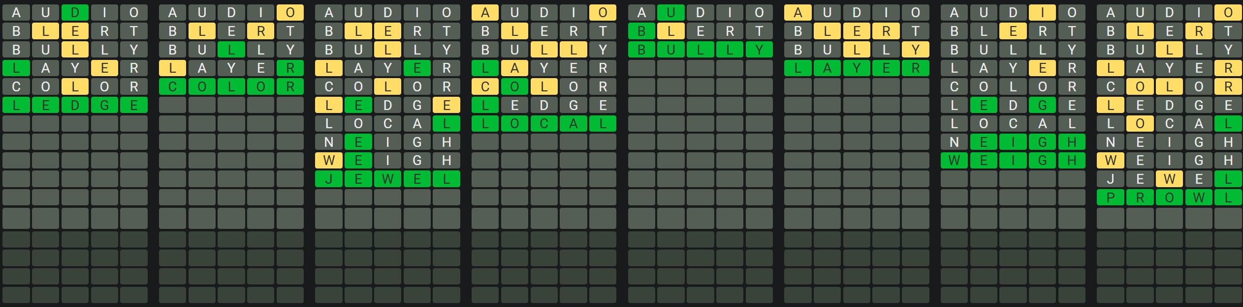 The Sequence Mode is similar to the original Octordle game with the following changes.