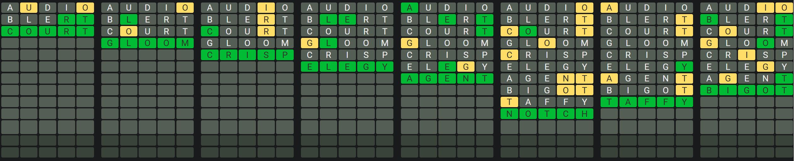 The Sequence Mode is similar to the original Octordle game with the following changes.