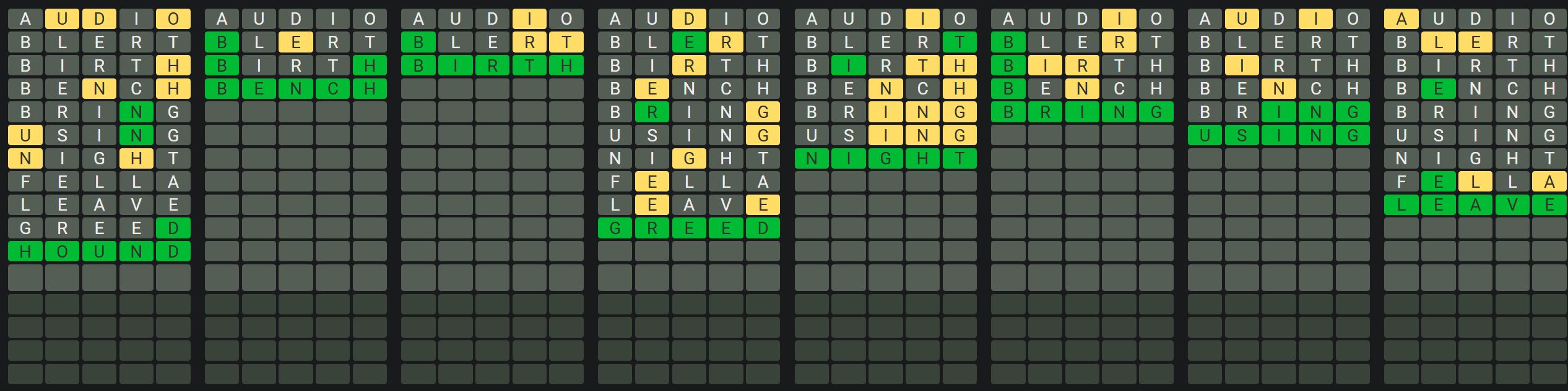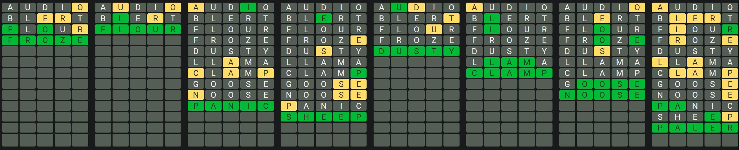 The Sequence Mode is similar to the original Octordle game with the following changes.