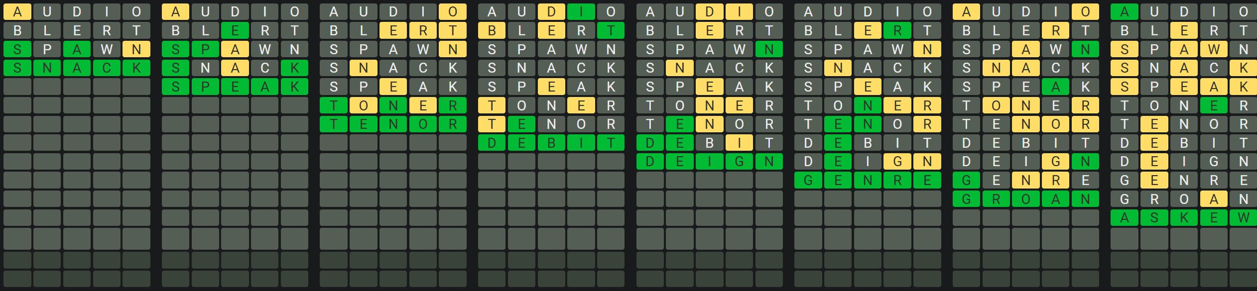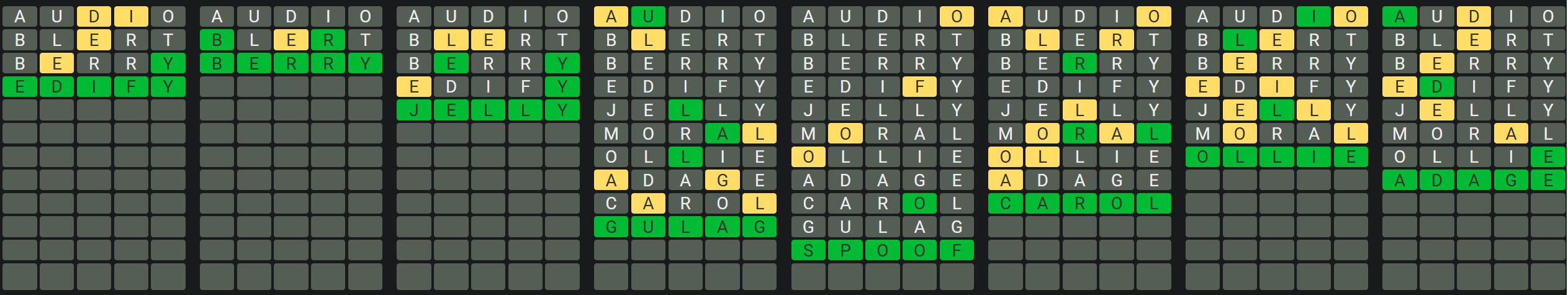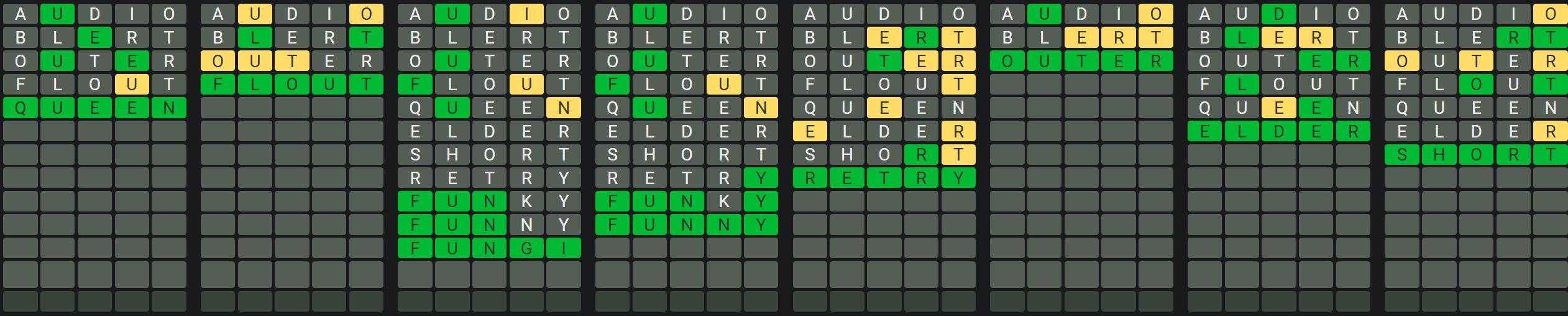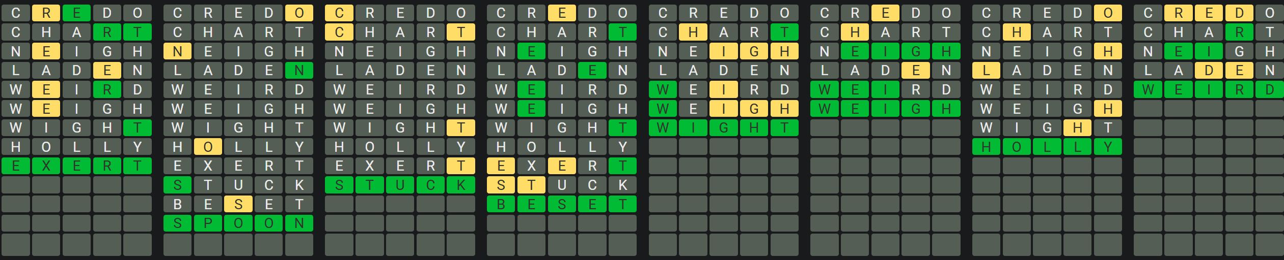The Sequence Mode is similar to the original Octordle game with the following changes.
